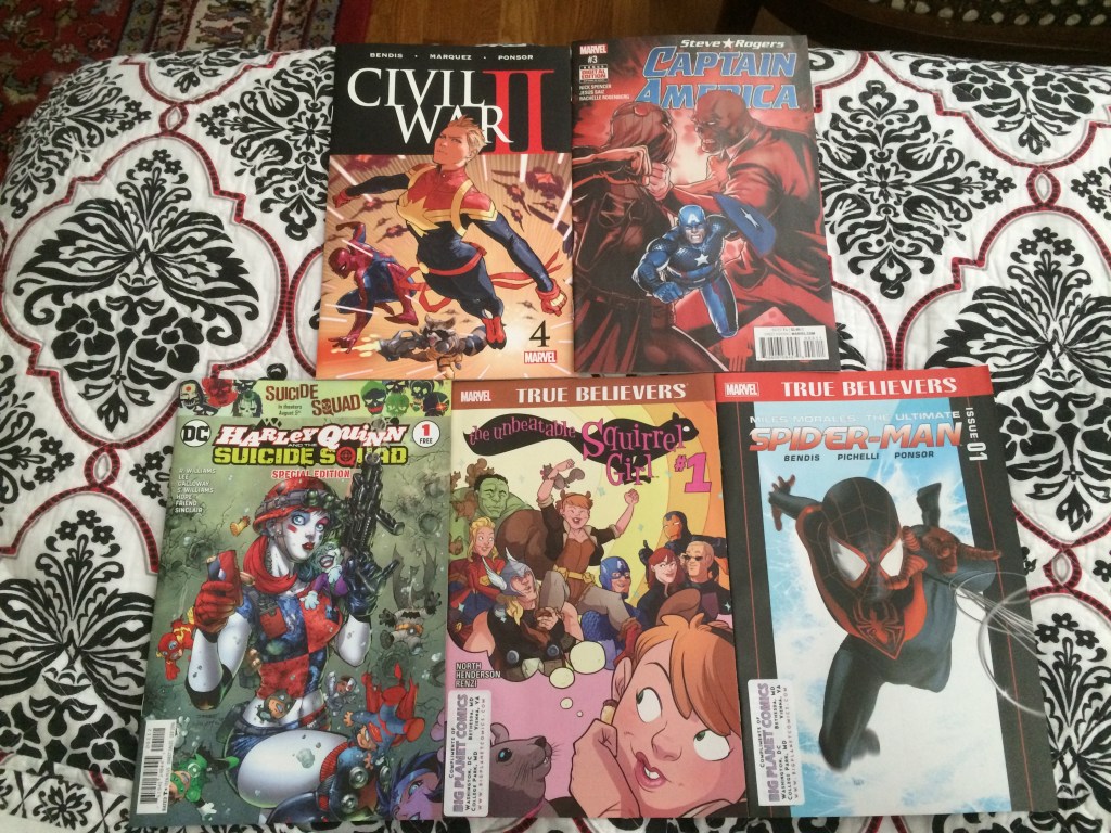 The three at the bottom were free. The Harley & Suicide Squad issue was probably to help promote the first Suicide Squad movie. And the other too are True Believers reissues from Marvel. Those are usually given out to help promote old, first or important issues of characters to get people to get into characters if a movie, show comic event or something is happening soon and they want people to be aware of said character. It can also be a good way to read classic or Golden Age issues. Though also anniversary years can be good for that as fancy reissues can be printed.