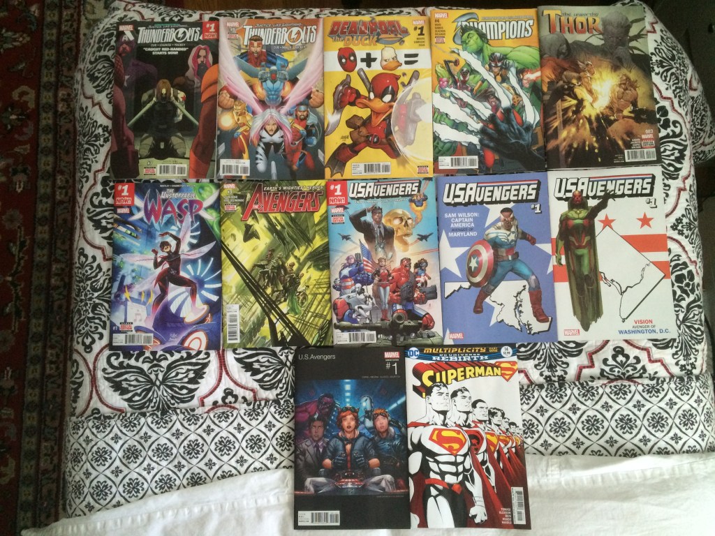 The Thunderbolts returned, Deadpool and Howard the Duck fused for a miniseries (yes, you read that correctly), Nadia VanDyne got her own title as the Unstoppable Wasp (All of the runs from her have been amazing and I really hope she gets a new book soon, It was amazing for girls interested in S.T.E.M.), and U.S.Avengers arrived, and with 51 variants for each state! I had to get Maryland’s and DC’s covers (I also got New Jersey’s cover because Kamala was on it of course!). Also, that team was such a hodgepodge of characters XD.