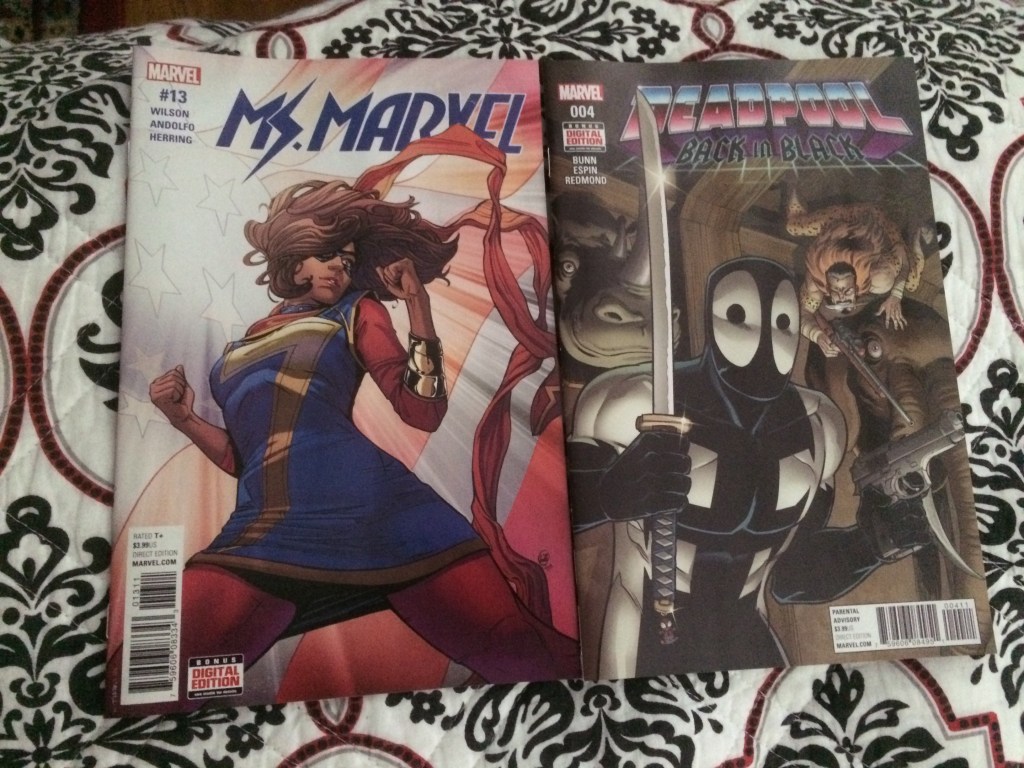 Got this Ms. Marvel issue for the great cover (though it was also a good story). At the beginning, I only got Ms. Marvel via the volumes, then I went back and found all the issues I didn’t get online. Also, I had forgotten that this design was another shirt that I got. That’ll be in the post after next.