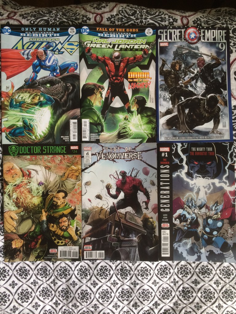 August 23, 2017 On March 24, 2022March 24, 2022 By TheDanielWhoWritesIn Comic Collection Photos Secret Empire was ending soon, the last issue of edge of venomverse, and Generations issue for the Thor’s. Share this: Share on X (Opens in new window) X Share on Facebook (Opens in new window) Facebook Like Loading...
