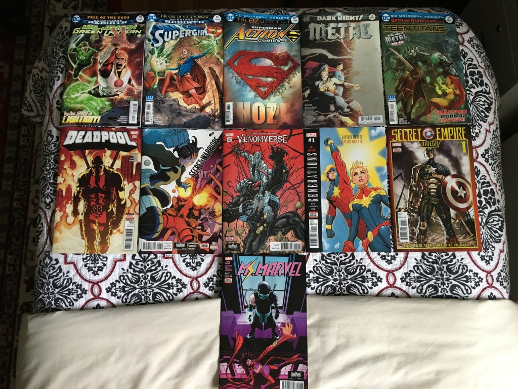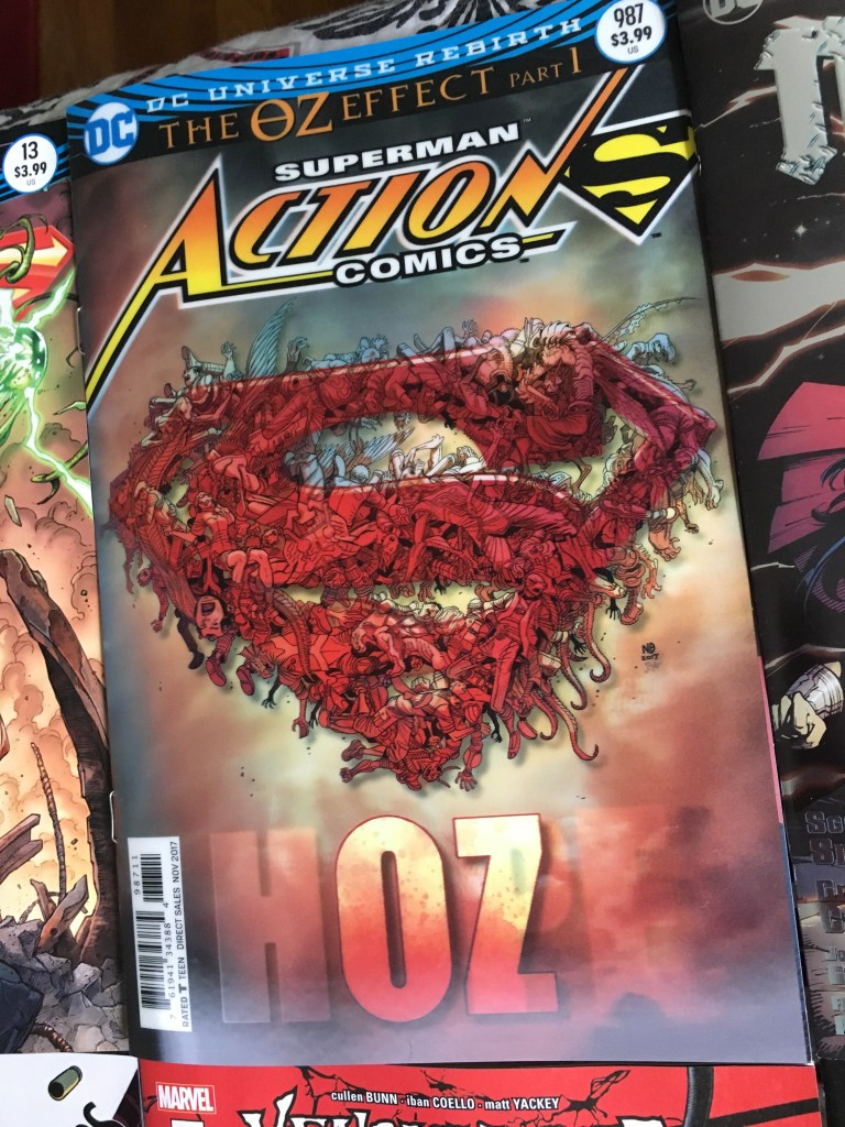 The New Gods were dying, part 1 of the Oz Effect, Metal issues, Carol’s Generations issue, the ending to Secret Empire (they started having Alpha and Omega issues to start and cap events respectively, hence the last issue of the main event was before this and this issue is here), Steve just had a horrible time, and Kamala has continuing stressors. Oh and the lenticular cover for The Oz Effect.