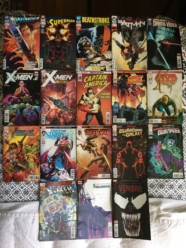 Photo 1 include normal Legacy covers, variant covers and the Silver Sable one-shot. Photo 2 are that days NCBD issues. Aaaand there are another two lenticular covers I didn’t photograph, oh well. I was posting these with items got in the mail, so I probably was so excited to get to those, that I forgot. The Vader issue has him fighting Jedi Master Jocasta Nu and the Grand Inquisitor!