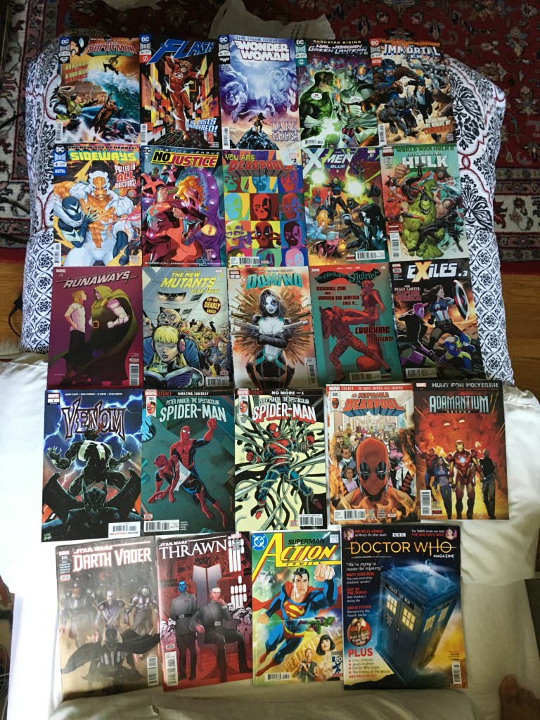 the No Justice event had started (that was a crazy cosmic event and I loved it! It really did change everything!), Ah right, Doreen and Kraven are friends too, the Exiles have Captain America (Peggy Carter) join them from another earth, Deadpool continues to be hated for what he did during Secret Empire under Hydra Capt’s orders, Peter was still having his adventure in the past, Venom started a new run, and Vader was with some Inquisitors.