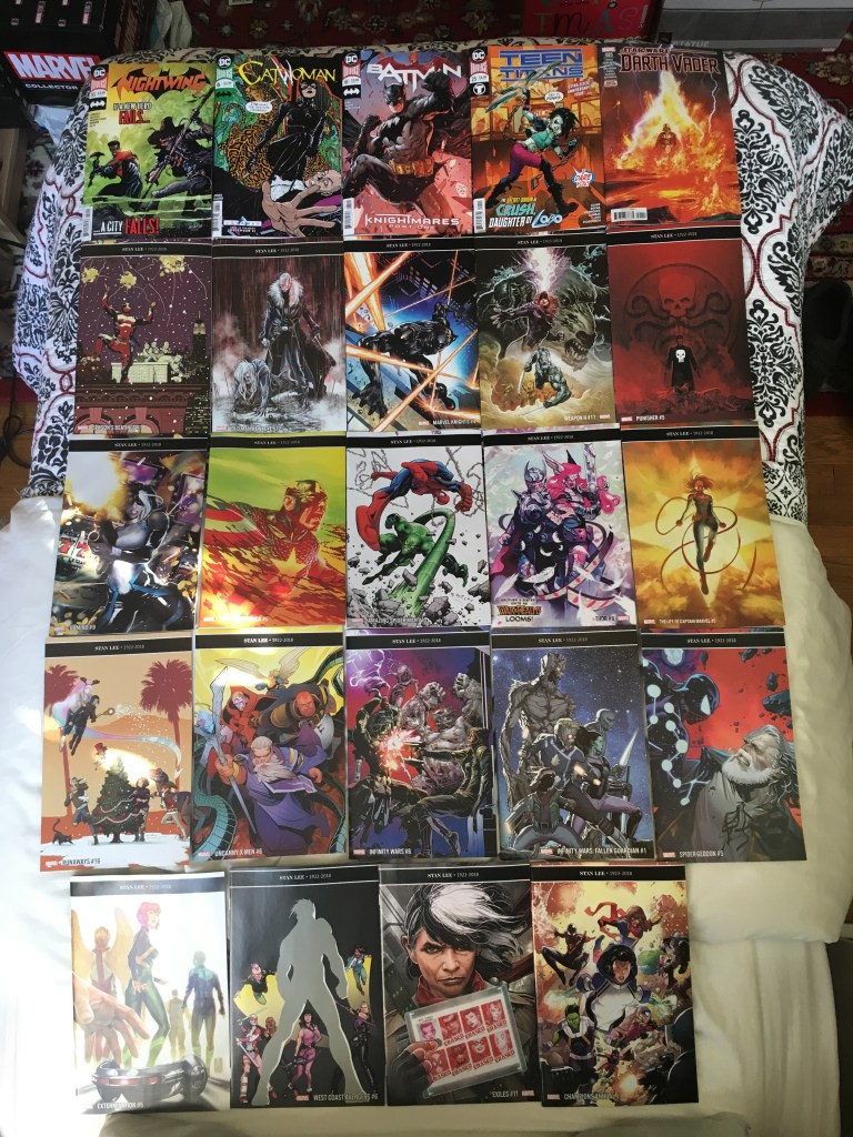The Nightwings group were having trouble, we got the origin of Crush, Deadpool had a holiday issue, Weapon H was busy, Punisher was taking out remaining HYDRA cells, working his way up, the War of the Realms was almost here in Thor, a fallen Guardian, Cosmic Spider-Man showed up to help in Spidergeddon (if I remember correctly, that goes very badly), the end of the Extermination event finally saw the young versions of the original X-Men return to their time (this issue was a bit late since last time had an epilogue issue dealing with the deaths that happened during this event namely, Cable’s), Champions got an annual and, Exiles introduced OLD WOMAN KAMALA (obviously I was very excited)!! Movie next!