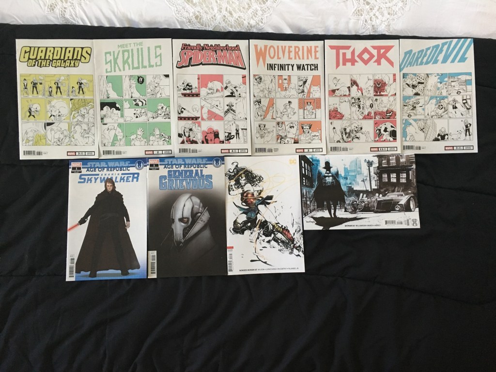 This time the variants come first since most of these were from the previous week. I got all the Fuji cat variants since they are adorable. Those Star Wars one-shots had concept art variants, so I always got those. That Wonder Woman one had foil for the lasso, so good! new comics in the second image.