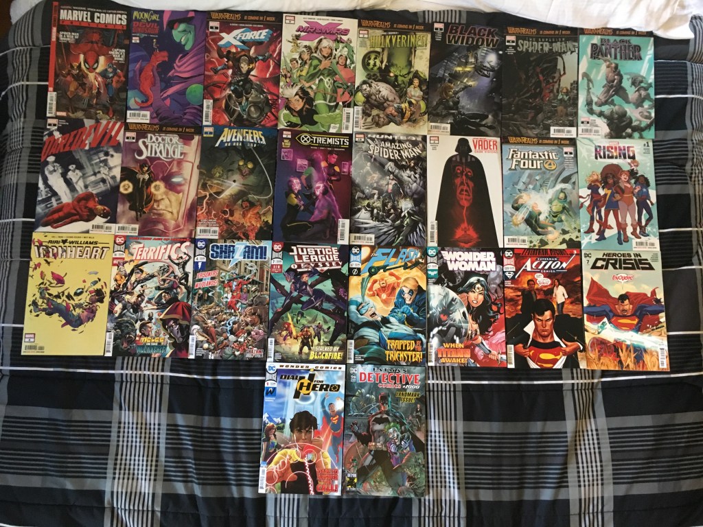 1 week till WOTR, Moon Girl met Sleepwalker, Rogue and Gambit relived some glory years, Doctor Strange had to deal with Galactus and it didn’t go quite the way he had planned, Secrets all over the AOX, The Hunted was a nightmare for Peter, the FF met Doom’s new herald, Riri was against an enemy who could take control of tech, Shazam and his siblings were in trouble, JLO had to deal with Blackfire, Waller was mad at Superman, Superman tried to stop Booster and Harley, the H-Dial was reintroduced in the world with a new title (a while back we entered the age of Wonder Comics where some new and returning titles appeared), and Detective Comics hit its 1000th issue (got all the decade variants of course).