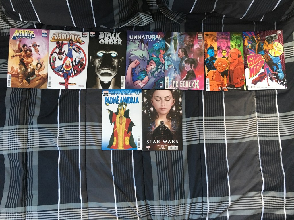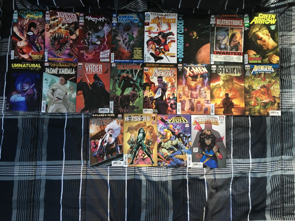 Metropolis attacked in JL, Young Justice having trouble with Star Labs, The Terminus Agenda was just about to begin for Slade and the Titans, Green Arrow ended at issue 50, Padmé got a one-shot, Vader had a new arc starting, Deadpool was dealing with some guy who had it out for him, WOTR was a month away, The Hunted began in Spider-Man, Domino got a group comic with her friends and a few new acquaintances, Cosmic Ghost Rider got a new run and the Champions were having a bad time of things.