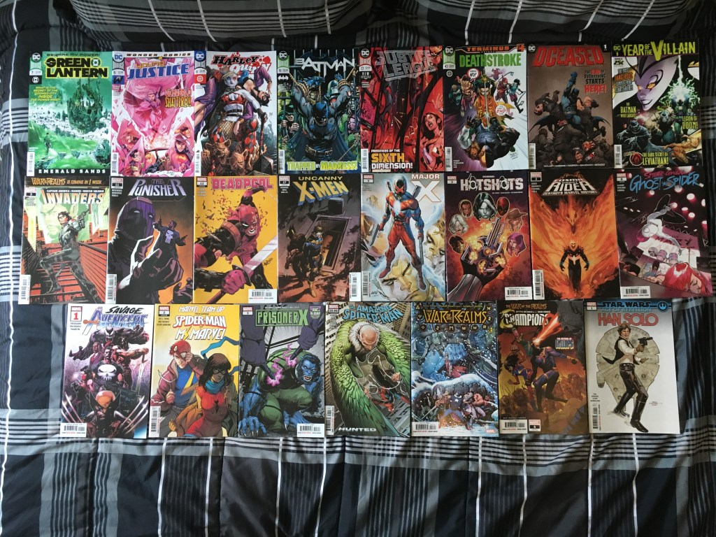 Hal was having a time inside his ring, problems in Gemworld, Harley and Selina were hanging out, Damian wants to end Slade, DC started its DCeased Elseworld series (basically similar to Marvel Zombies but for DC), Year of the Villain had started in DC (so many events the past year had actually been connected to this one all crafted exactly how it was planned, well, mostly), everything was in general chaos, ah yes, Savage Avengers started (it’s funny, I subscribed thinking this would be a 12 issue maxiseries but it just kept going and going, it only just ended in January 2022. It was utterly worth the wait I’d even buy an omnibus), Peter and Kamala were still powers-swapped, WOTR’s bled into other titles, and Han Solo got a one-shot. Variants in photo two.