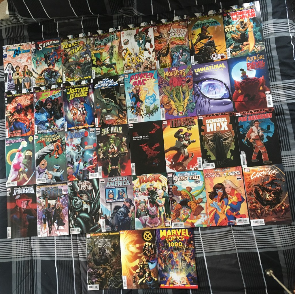 The H-Dial was busy, one end of Rogol Zaar, Red Hood got some new Outlaws, Babs was dealing with a rogue Oracle, the Terrifics encountered Bizarro, JLD was struggling against Circe (having accepted Luthor’s offer), Deadshot was gunning for Batman, Luthor’s gift to Cheetah was the Godslayer sword, Red Cloud also indulged in a Dark Gift, The Flash’s rogues did so too, The Justice/Doom war began, in a new Batman/Superman run, they learned that some of the heroes were infected by The Batman Who Laughs to go dark (time was not on their side), the Power Pack ad a one-shot (I’m relatively sure that’s a one-shot and not a miniseries), Niko and Carolina were secretly hero-ing it up in Runaways, Fisk was after Boomerang because he knew a big secret, Avengers Mountain wasn’t happy, General Hux and Poe Dameron both got a one-shot each, Black Panther returned to earth, Stephen was continuing to have magical troubles, Steve was wanted for murder, Thor was dealing with the aftermath of the war, Kamala and Carol’s team-up continued, Absolute Carnage and HoX continued, and Marvel Comics #1000 dropped.
