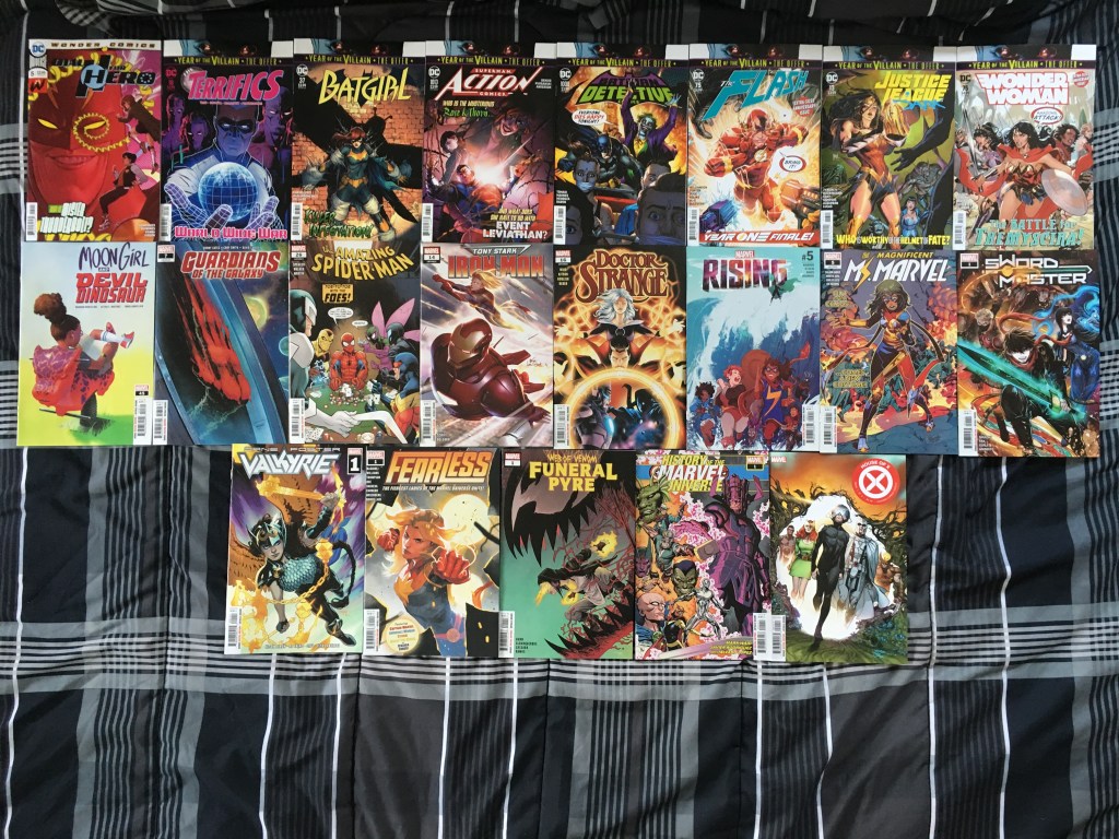 Mister Thunderbolt was causing havoc in Dial H for Hero, Rose&Thorn showed up to give Clark trouble (she actually had a crazy arc during all of this that ended very surprisingly, I really enjoyed her character during it all), more villains got Offers, Flash ended his time in the past learning from it and his potential future in this run’s 75th issue, JLD needed to find someone new to dawn Nabu’s helmet, in Wonder Woman’s 75th issue of this run, Themyscira was under attack, Peter having a super villain roommate was not going well, Stephen and Clea has to deal with a magically enhanced Galactus before he literally consumed every magical realm, Kamala got a fancy new alien suit, Sword Master got a title (the art of which was breath-taking at times, I posted (or will post) some of those panels on my comic IG), we got Jane as the new (and only) Valkyrie wielding the All-Weapon, the Fearless anthology miniseries started (it focused on a female heroes inspiring young women through various adventures), another Web of Venom issue, and the first issues of both History of the Marvel Universe and House of X arrived.