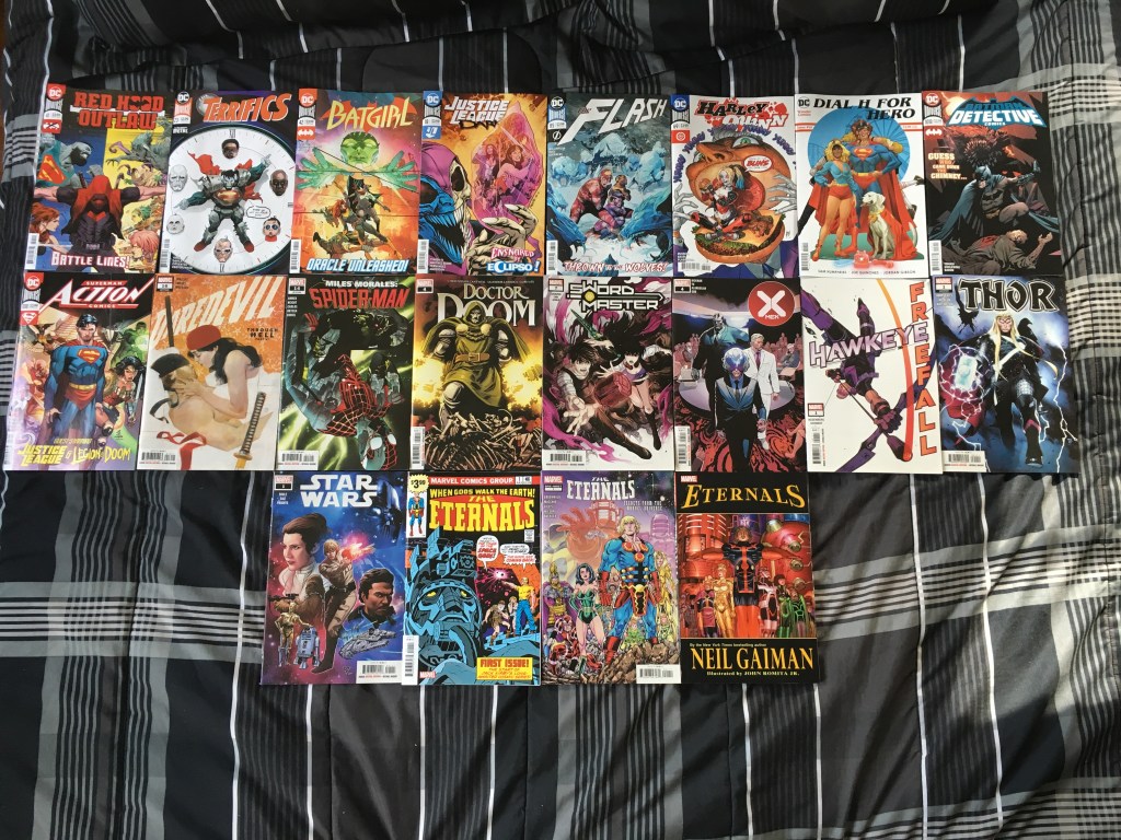 Red Hood’s old and new Outlaws had some issues with each other, Batgirl was still dealing with the rogue Oracle, JLD had Eclipso problems, Miles still had Ultimate Goblin around, Hawkeye got a new run, Thor started a new run as King of Asgard, Star Wars started its post-TheEmpireStrikesBack run, that classic issue of Eternals that I got that poster for got a reprint, Eternals got a one-shot and I got Neil Gaiman’s volume of Eternals.