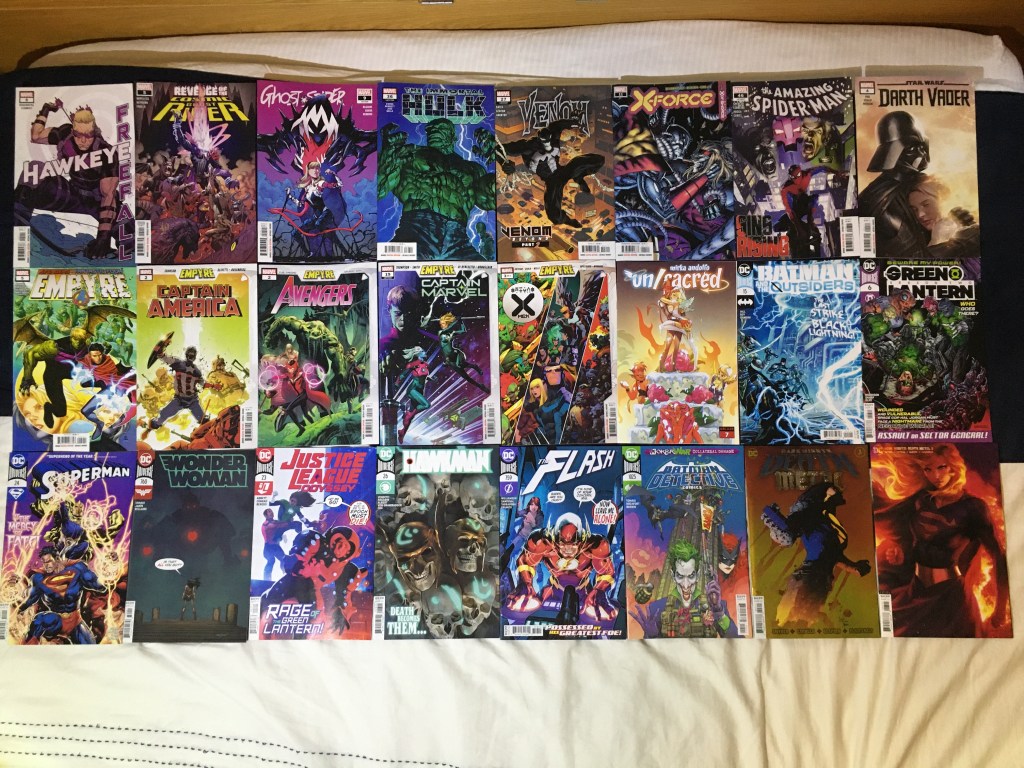 Revenge of the Cosmic Ghost rider got its final issue, Gwen was still having symbiote problems, X-Force and other X-issues were ramping up to the X of Swords event, while Spidey was still dealing with sin eater, various Empyre issues were happening, Carol found a sister, Clark had a visit from Doctor Fate, Jessica Cruz was having none of what Epoc was planning, the hawks were finishing off this fight before moving on to what came next, Barry’s body was taken by Thawne, Joker War was raging, and DKDM was still going.