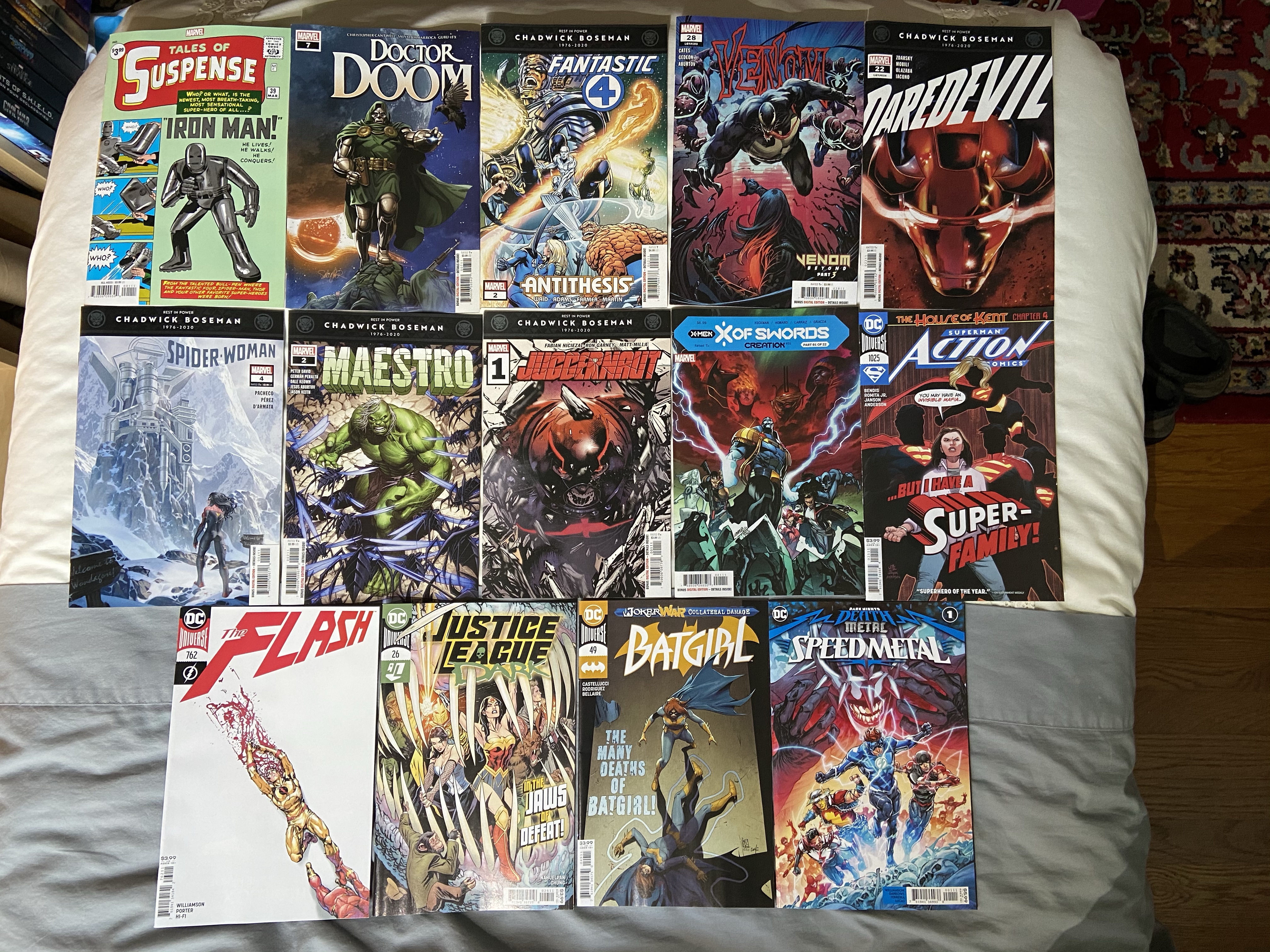 It was at this point that these were the first printed Marvel comics since Chadwick Boseman passed away, so Marvel had these banners on their comics for a while. The back cover art change per week I think.