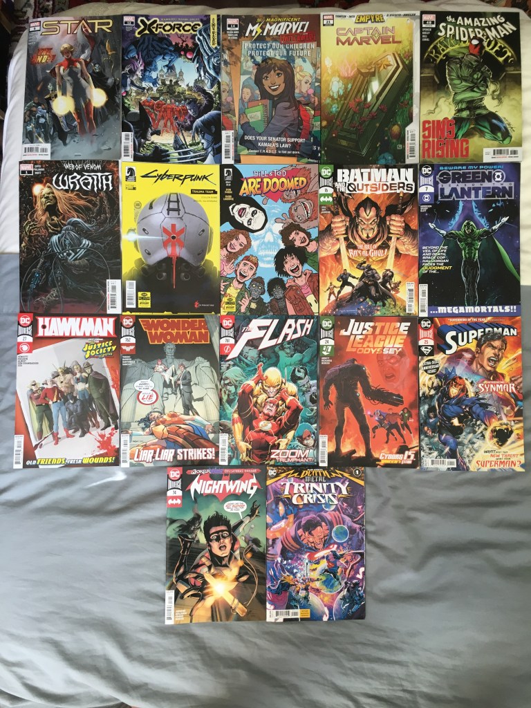 Star teamed up with The Black Order for her last issue, Krakoa had Russian problems, Kamala woke up to a law with her name in it that was against everything she stood for, Peter was not having a good time, we got another Web of Venom issue focusing on the character Wraith, I got CyberPunk 2077 #1 and Bill & Ted are Doomed #1 because it was my birthday and I wanted to see what fun #1’s were dropping on the day, Ra’s was doing well, Carter and Shayera were thrown back in time to their pas JLA selves, Liar Liar was making moves, Zoom was doing well (ah, whoops, the past few comics posts with Flash issues in this arc I’ve said it was Thawne, not Zoom. Oh well. XD), what was left of the JLO tried to connect to Cyborg, this run of Superman got to its 25th issue and introduced Synmar (a crazy strong character from a new species), Nightwing was trying to fight Joker’s influence, and we got another Death Metal special where the Trinity’s plans did not go well at all.