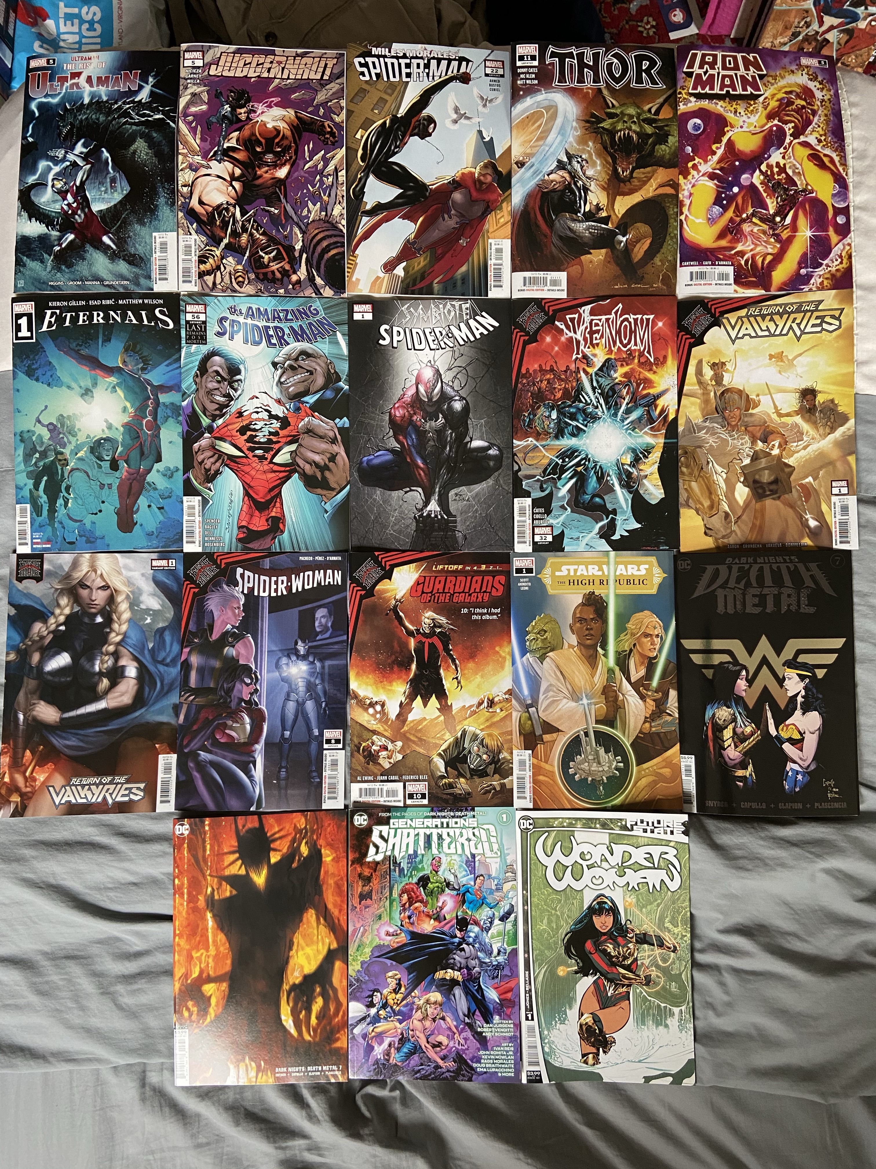 Juggernaut had is final issue, Miles and Starling had a day together, Thor was still stuck while Blake raged, Korvac had his plans, Eternals got a new run, Last Remains got an epilogue issue, The Valkyries returned (one new and others of old, including the 616 version of the MCU Valkyrie whose name we didn’t know yet), the Guardians issue of KIB happens before he gets to earth (the pandemic plus general publishing issues made it so all the events of 2020 and some of 2021 were all out of order), Star Wars had begun its High Republic age across all mediums, we got the finale of Dark Knights: Death Metal where we learned Diana’s fate, and because of that event, we got Generations (a two-part mini event right before Future State), and we got the first issue of Wonder Woman with the new Wonder Woman.