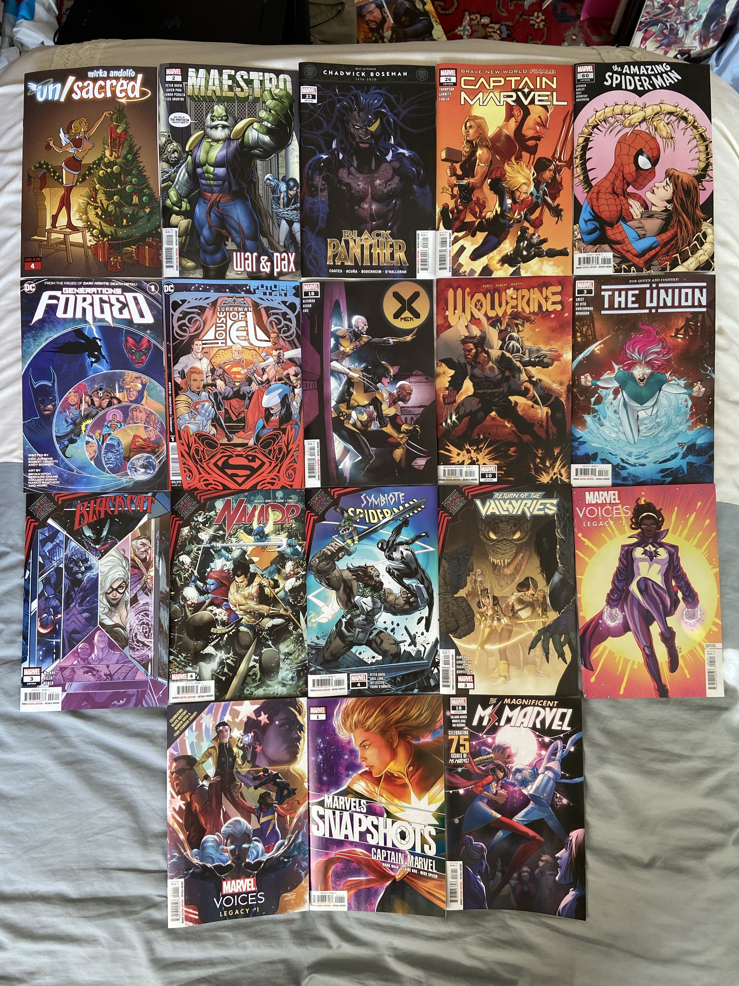 Maestro heard that the Pantheon were still alive and headed for them, Carol was still in the future, Peter and MJ needed some time to themselves, the second issue of Generations happened, FS Superman House of El dropped, in X-Men we got to see what happened into The Vault (a lot happened, decades happened. Some things have still yet to be resolved today), the KIB invasion continued, Marvel Voices: Legacy special was released (got the poster for the A Cover the week before this), Marvels Snapshots started a Captain Marvel storyline, and Ms. Marvel got to its 75th issue (which was also the end of this run), a lot was going on for her.