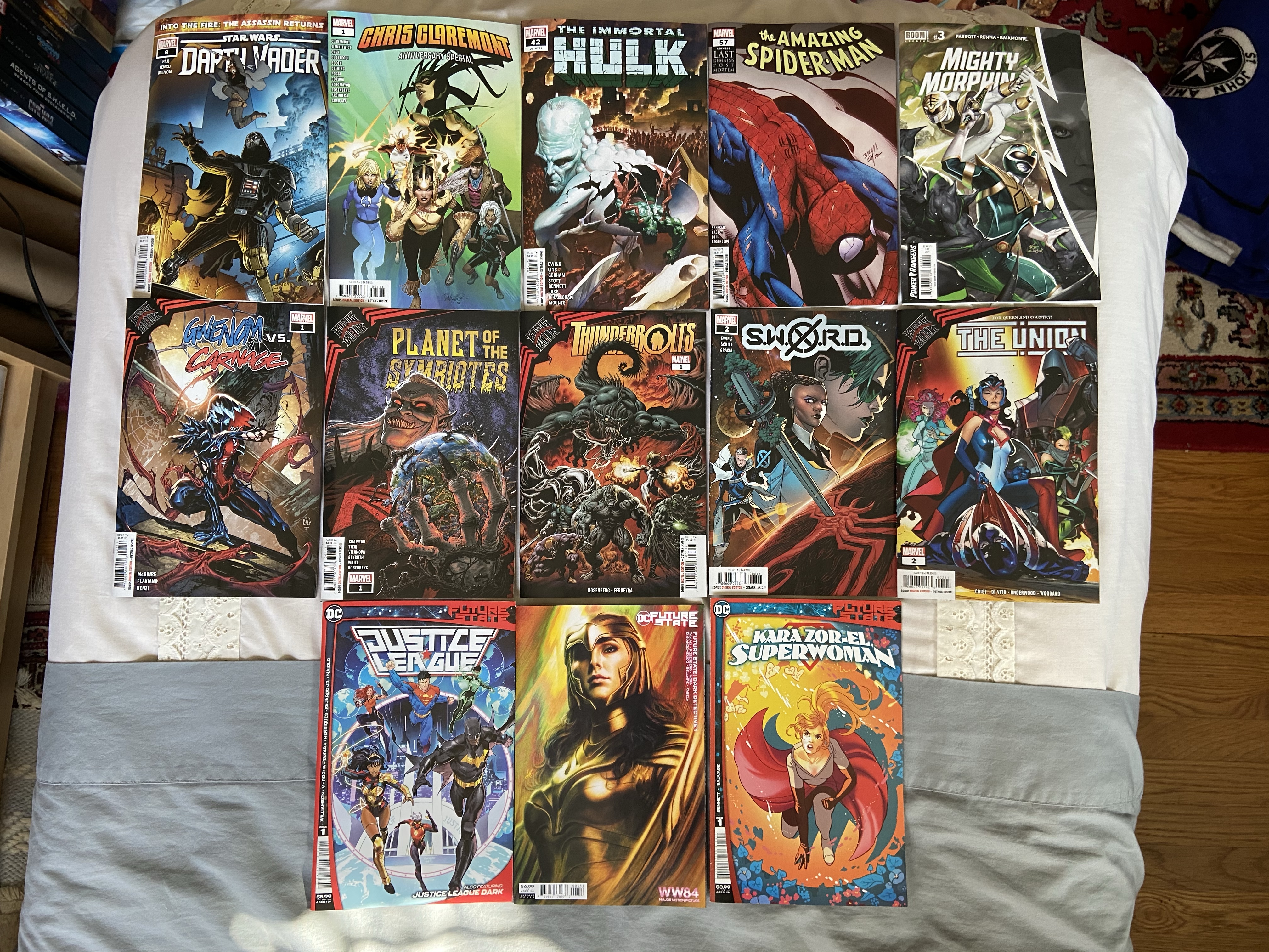 Ochi tested Vader, we got a Chris Claremont special, Leader’s plans had come to fruition, Spidey was still having a bad time of things after Last Remains, Gwen’s MJ got taken by Knull and made into Carnage, KIB was just generally doing quite well, in DC they began the era of Future State (this was a time where all titles got paused and they focused on stories in the potential future of DC. Some of which would come to pass, others wouldn’t. This lasted for a couple months. I didn’t really know what they were doing, I thought all of this was a kind of Elseworld event and none of it really mattered if it was all potential futures, so I didn’t get a lot of them beyond characters I always enjoy), the first of these were Justice League, with these younger generations having taken over (which is basically what they are about to start with “killing off” the JL in JL 75), Dark Detective, and Kara Zor-El Superwoman (this one I liked the most I think because it was more accurate to what I thought Future State would be, either solely potentially or far enough in thee future that the story didn’t matter, whereas a lot of FS was set in the near future).
