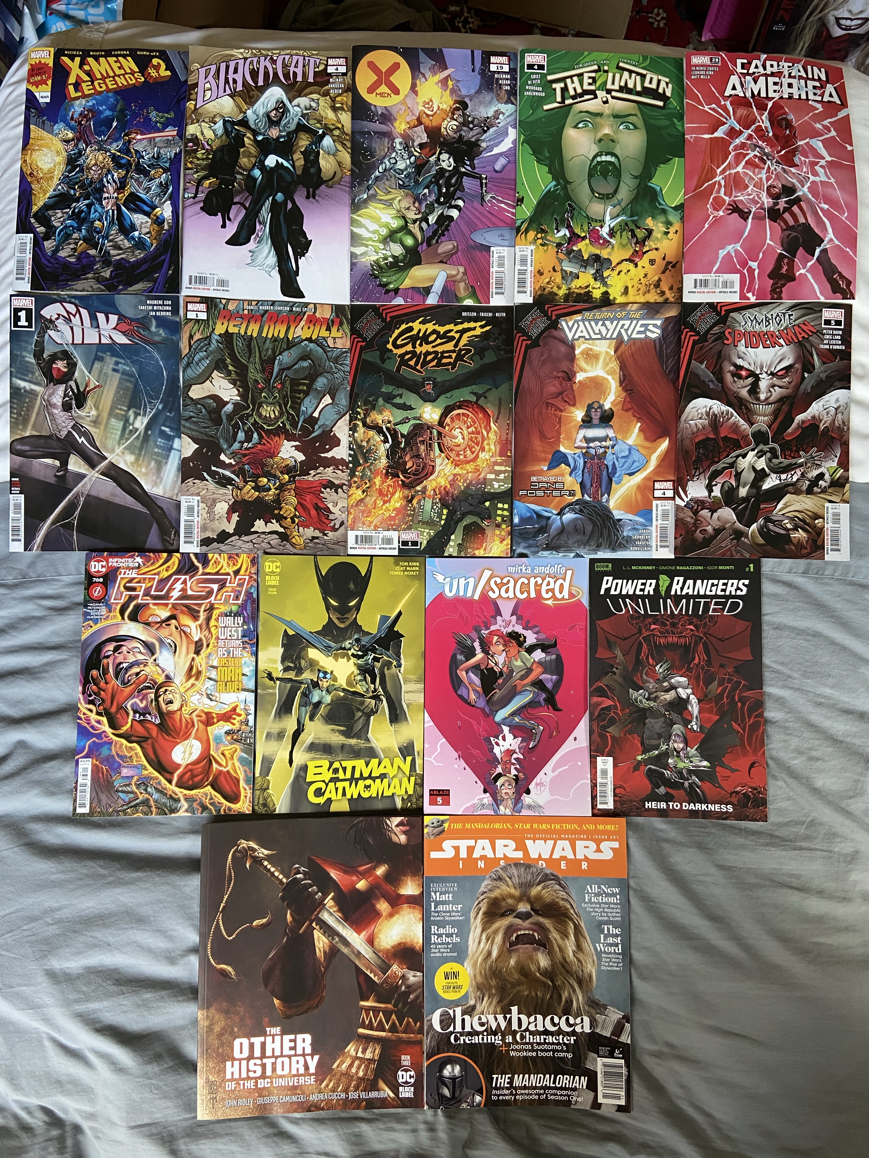 Felicia had to deal with a copycat, the X-Men in The Vault escaped, Capt had this run’s antepenultimate issue, Silk got a new run, Beta Ray Bill got a run dealing with the after effects of Knull in space, there were more KIB issues, Wally had decided to step away from being The Flash but some crazy things happened and his mind was sent backwards and forwards in time into predecessors and descendants respectively, Power Rangers got an Ecliptor and Astronema one-shot, we got an Other History issue for Tastu Yamashiro (Katana), and the next SW Insider.