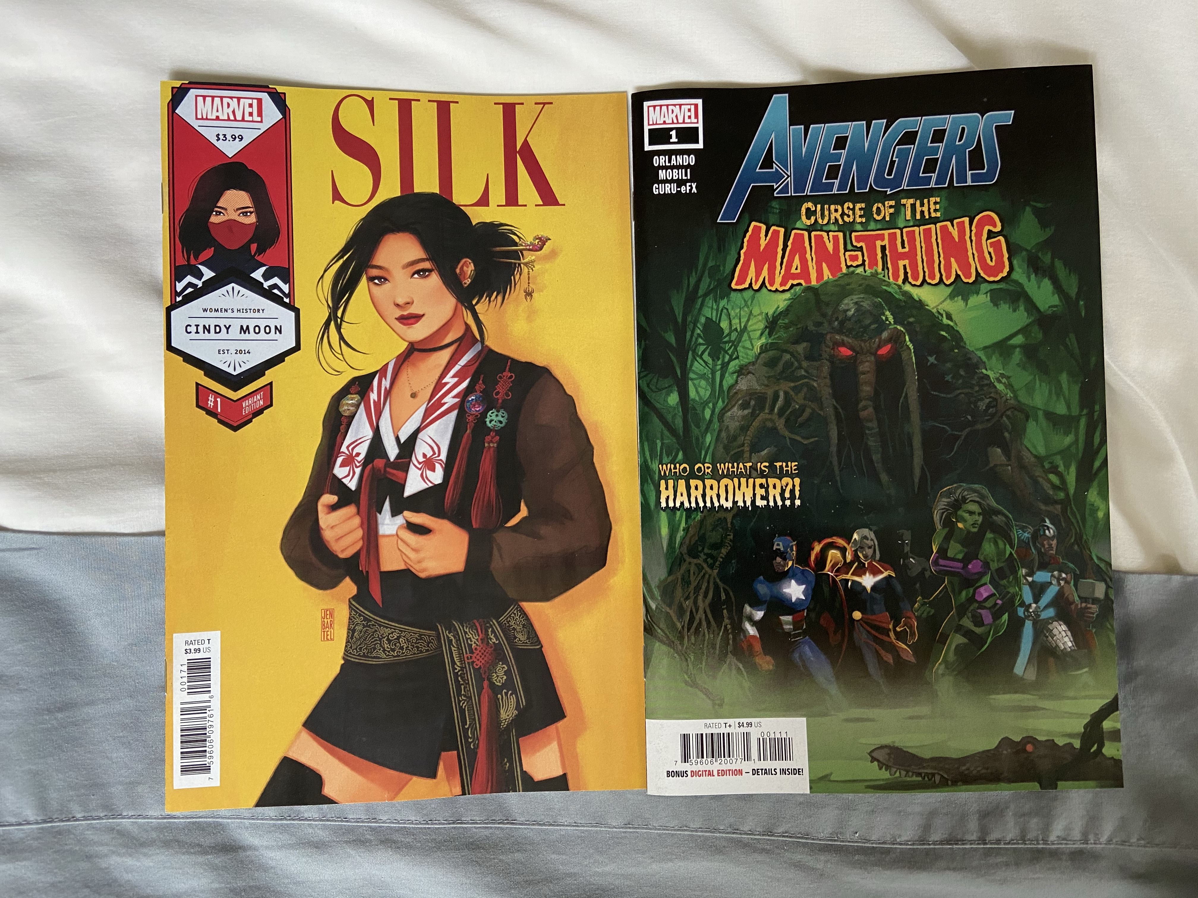 Image two is the STUNNING Jen Bartel variant for Silk 1, and the first Man-Thing mini-event Avengers special. They came the following week.