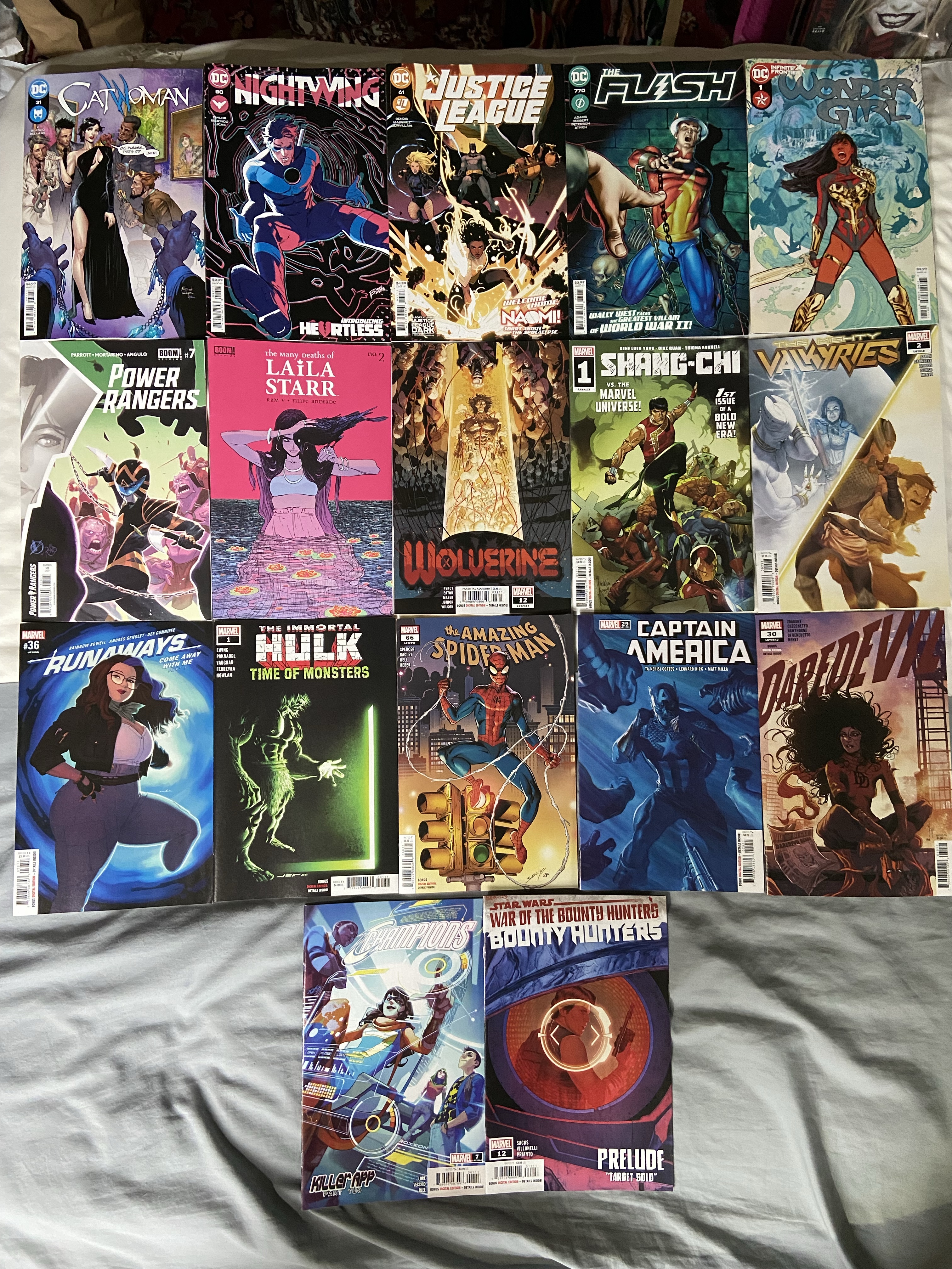 Selina found Ivy, Nightwing got a terrifying new villain who rips people hearts out of them, Naomi and the JL went to her earth and things went poorly, Wally was still hopping through minds, Yara got her own title under Wonder Girl, issue two of Laila Starr dropped, Shang-Chi got a new run, both Valkyrie’s were busy with dangerous individuals, Future Gert, we got another Hulk special, Spidey wa recovering from the events of King’s Ransom, the Champions were infiltrating, and we got another WOTBH prelude.