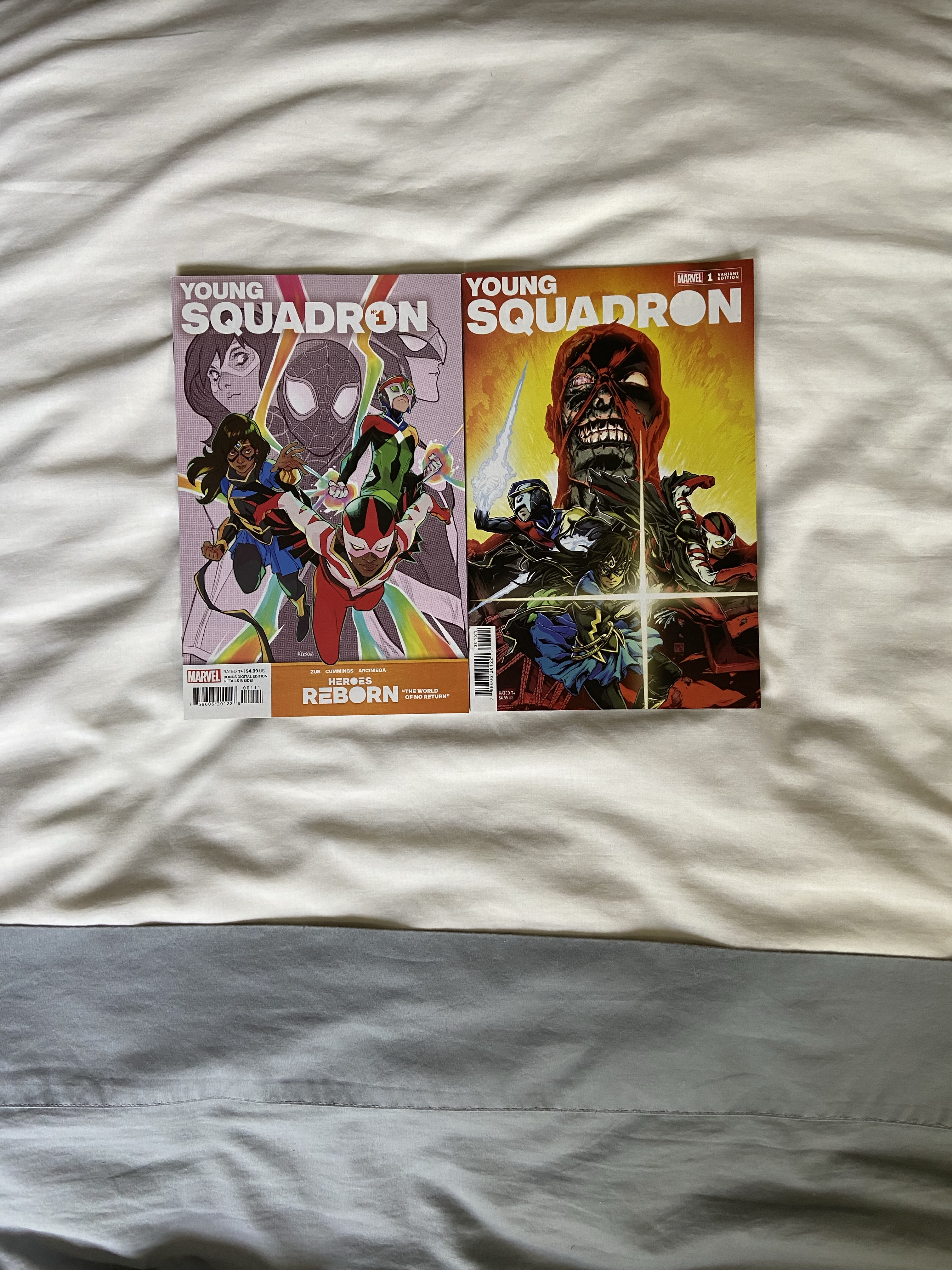 These should have come out at the end of May. This was part of Heroes Reborn where what would be the Champions became Young Squadron.