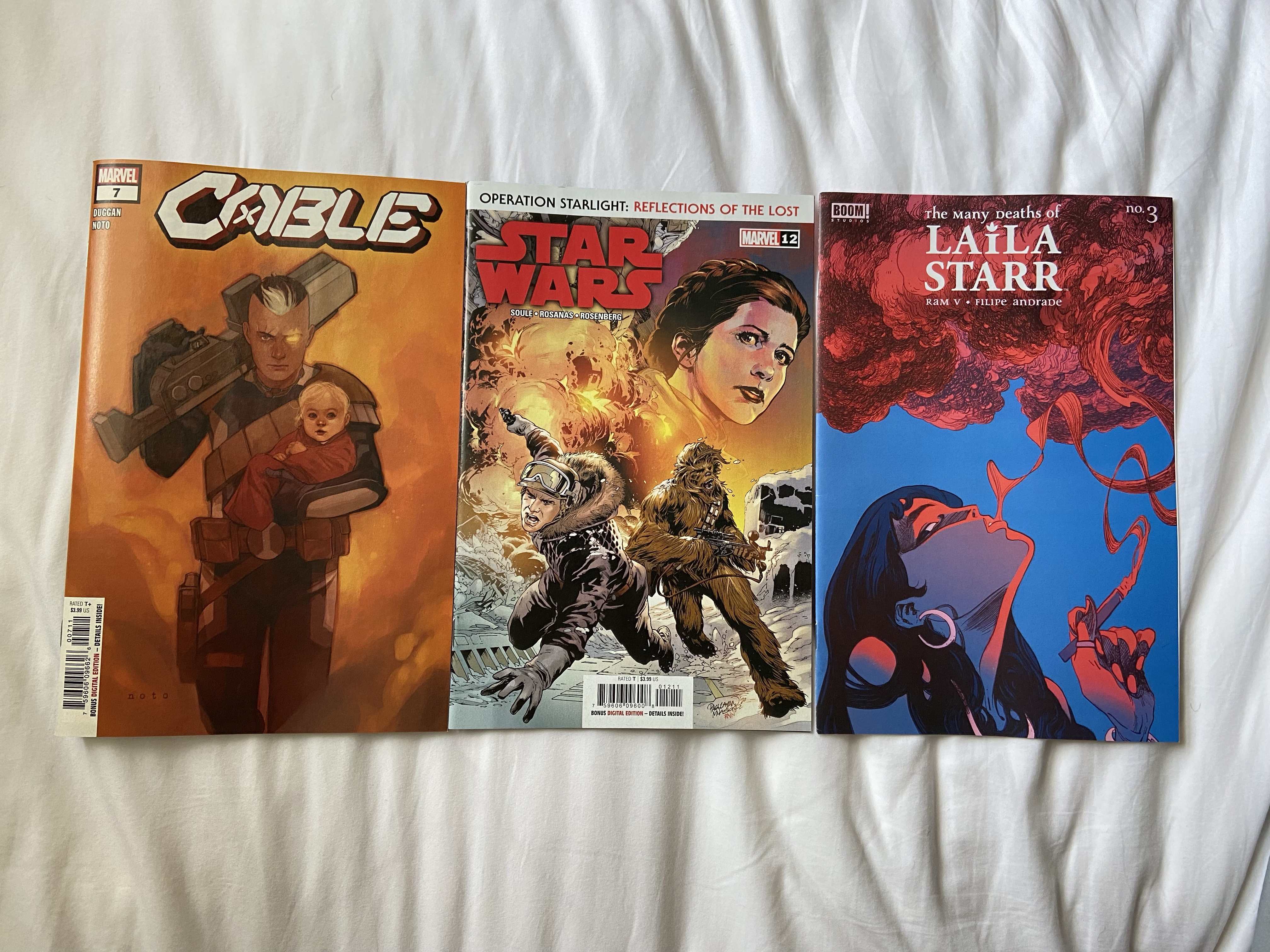 Cable 7 was very very late from January (though that might have also been because I ordered it late and my store just had to track down and issue, I ‘cant remember now.), Star Wars 12 was from March and Laila Starr wasn’t actually so late, but it arrived after a lot else in June.