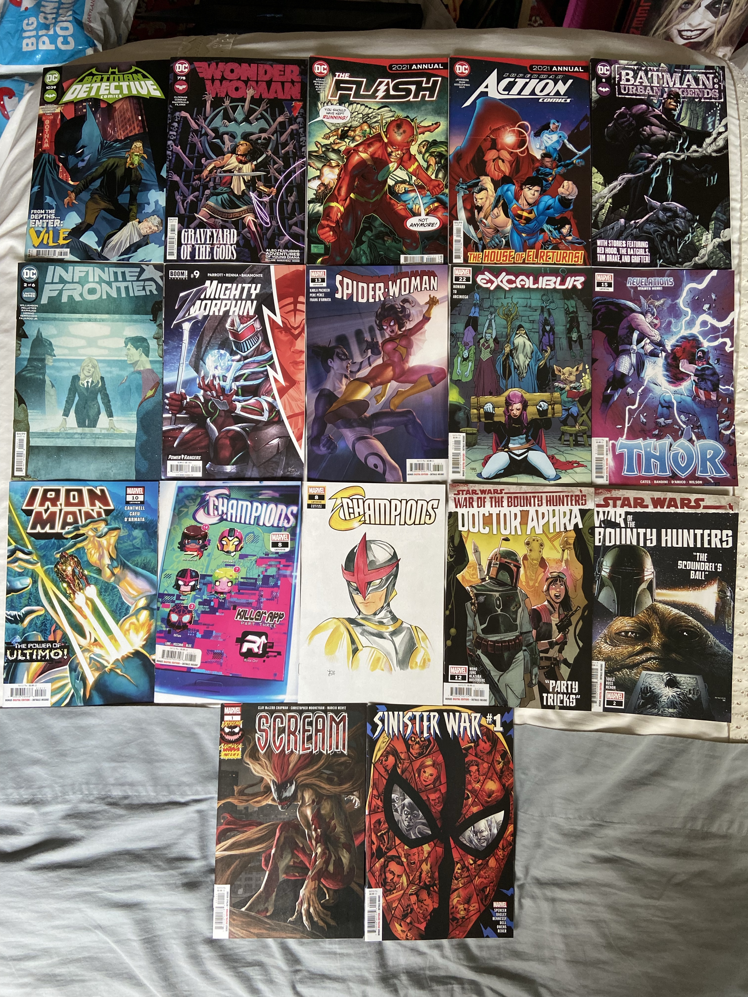 Mayor Nakano hired Vile, Vile was literally vile, Diana wandered the graveyard of the gods, Wally’s journey came to an end back in the present, the House of El (from Future State) got a annual on AC, wow, I forgot how much was going on in Infinite Frontier, Jessica Drew took on Lady Bullseye, political drama galore in Excalibur, Thor started a new arc (with a new artist) after all the Donald Blake chaos, Tony was stuck on a world with Ultimo on it with random others and Stilt-Man, Roxxon attempted to trap a crowd of Kamala’s Law protesters, WOTBH continued, Scream headlined the second part of Extreme Carnage (each life-foundation symbiote had an issue as Carnage attempted to control them for his plan), and Sinister War had begun (Peter had just such a rough year).