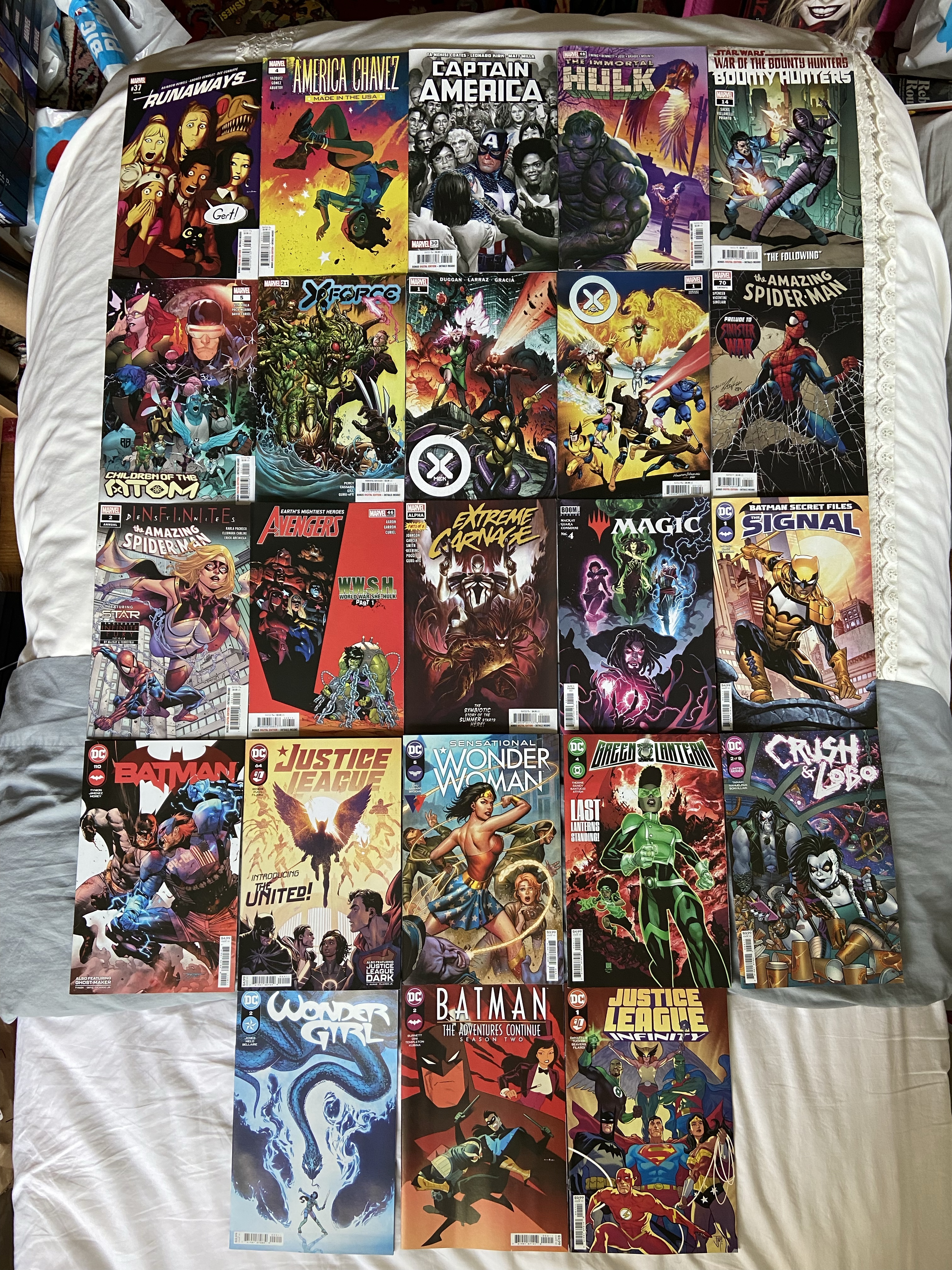 Runaways was at issue 99 before the final issue of this run and things were looking dark, America was also on its penultimate issue where she was about to learn more about her past, we got Ta-Nehisi Coates last issue of this Capt run, Hulk needed advice so he went to Betty, we got introduced to a new assassin character in WOTBH, COTA were captured but one of them had a secret that could save them, (odd online the publishing date for X-Force 21 is August 2021), the vote having ended, we got a new run of X-Men with the new team (also we had the next vote already for this year’s Gala, we’ll see in June what the new team is for 2022), for Peter, the Sinister War was brewing, Peter also got an issue of Infinite Destinies with Star guesting, the Avengers headed into an arc dubbed World War She-Hulk (not as grand as the original WWH, but a lot happened to Jen), after his defeat in Absolute Carnage, plans were being set for Extreme Carnage (an 8-part event), Signal got a BSF issue, Batman and Peacekeeper-01 continued to battle it out, the United Planets formed a grip of heroes called The United, and they came to earth, on Oa, things were very bad, only a handful of lanterns were left, Crush and Lobo’s adventure continued, Yara had to eyes of Olympus on her, Batman TAC continued and the Justice League TAS also got a comic continuation called Justice League Infinity.