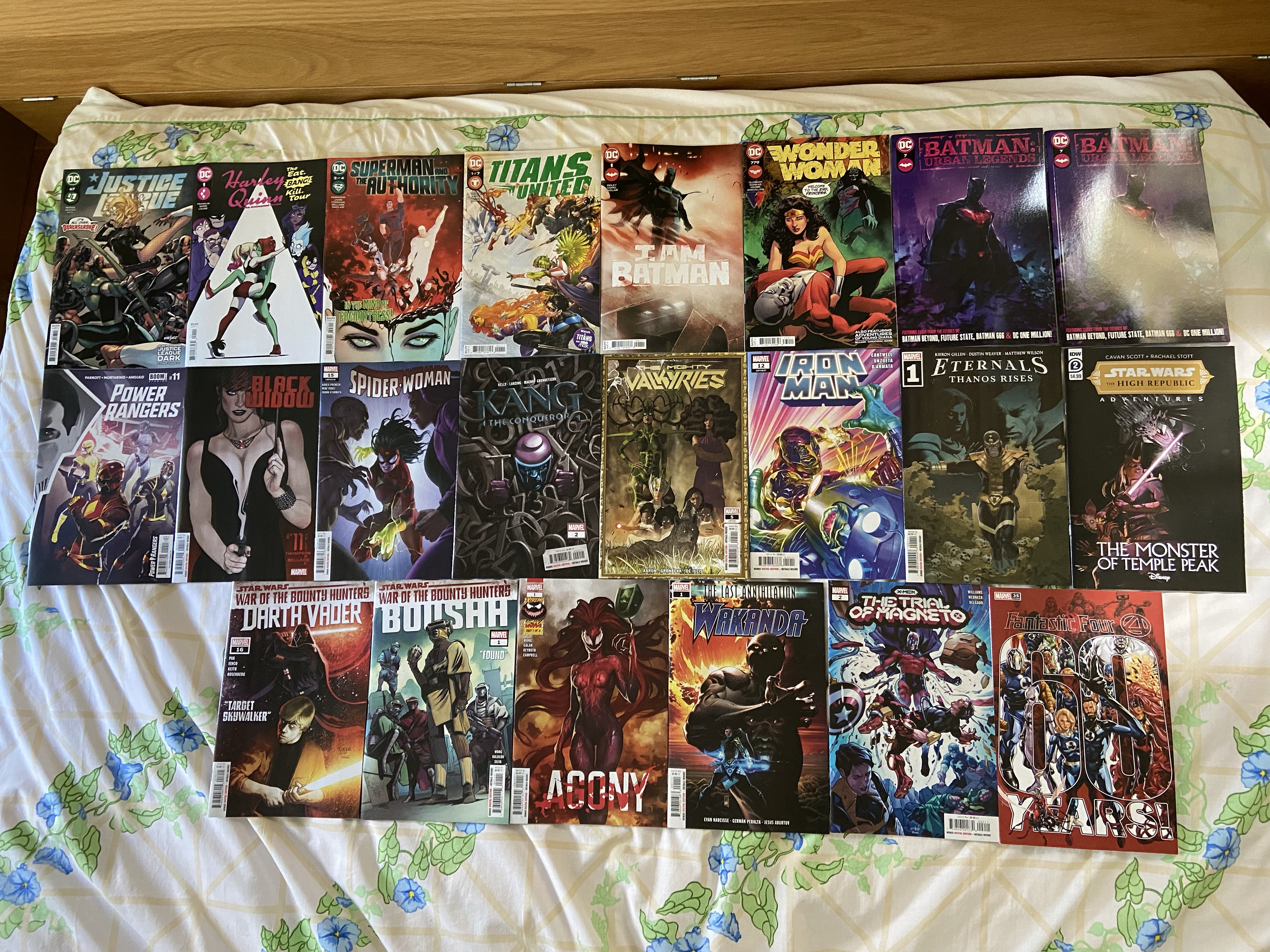 Black Canary had some issues with Deathstroke, we got a canon comic to the Harley animated series that DC made for DC Universe/HBOMax, they made a Titans miniseries that was similar to the DC Universe/HBOMax Titans series but the story wasn’t connected to it at all, the next Batman got a title, Deadman got more dead, I got two copies of that Batman: Urban Legends because LOOK AT THAT COVER, Black Widow started a new arc, Kang’s story continued, we got the final issue of Mighty Valkyries, Thanos had his eyes on the throne, WOTBH continued and got a Boushh issue, Agony got the next Extreme Carnage issue, Wakanda joined the Last Annihilation, Trial of Magneto continued and the Fantastic Four got a 60th Anniversary issue.