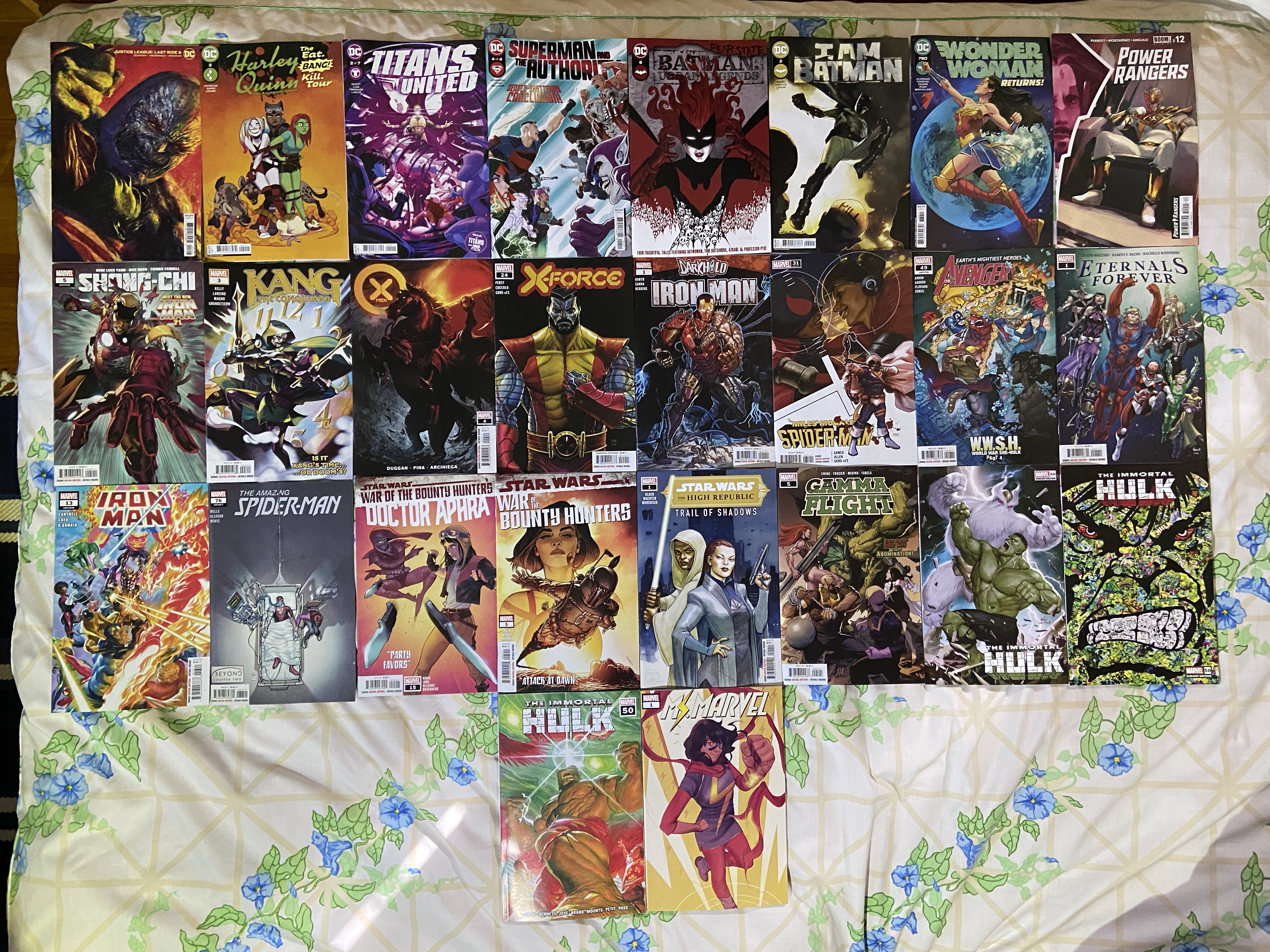 Got this JL: Last Ride 6 variant because of the Darkseid cover, Harley TAC comic continued, Superman and the Authority ended before the plan was to happen, Diana returned to the land of the living, Shang-Chi and Iron Man had words, Kang and Doom saw things differently, Colossus was a pawn, the first Darkhold special dropped (each hero who Wanda tried to save during the Darkhold Alpha got their lives warped into a twisted horror story), Taskmaster was hunting Miles and Tiana, Jen was still Red, the Eternals got another special, Tony and his friends reunited to all confront Korvac and his cohort inside Taa II, Peter was in a coma, the last issue of Gamma Flight had the team confront Abomination, and Immortal Hulk had its final issue at 50 (it was a crazy ending! Loved it!), and we got a Ms. Marvel special which included re-printings of stories past.