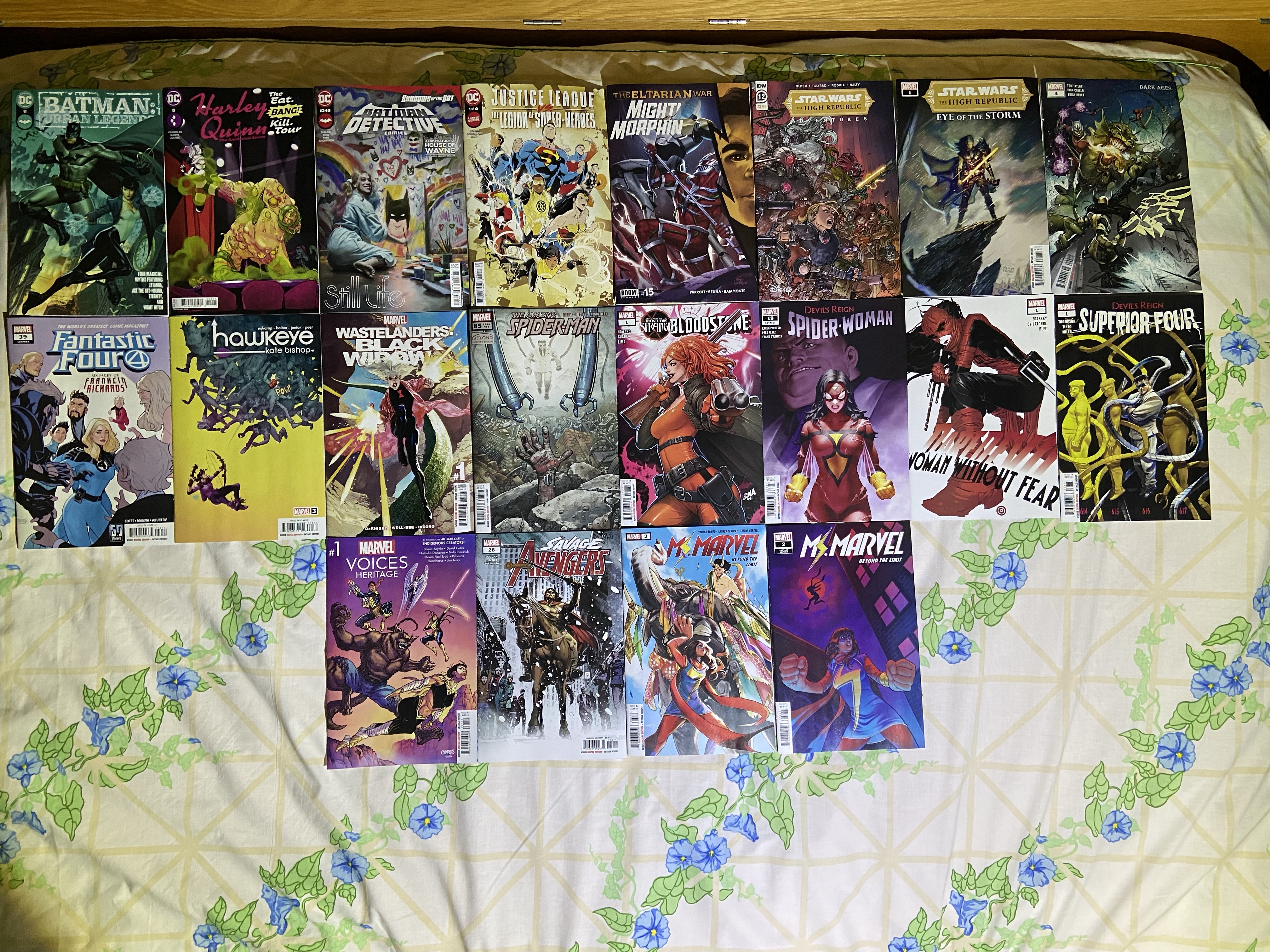 Another villain was looking to take Ivy’s spot as most toxic villain, Arkham Tower looked legit, we got the Justice League vs Legion of Super heroes event started, Star Wars gave us a title about a major character in the HR novels, Dark Ages continued, the FF had quite an eventful day in court and poor Johnny still couldn’t turn off, Kate’s troubles rose, we got the Wastelanders Black Widow issue, Electra got a title spinning out of Daredevil called Woman Without Fear, Otto got a team of variant Otto’s in his own title during Devil’s Reign called Superior Four, Marvel Voices Heritage dropped which focused on Native American/Indigenous People’s characters, Savage Avengers ended its fantastic run at issue 28 (though a new run with a new cast starts soon), and Ms Marvel was having problems with her powers plus hallucinating.