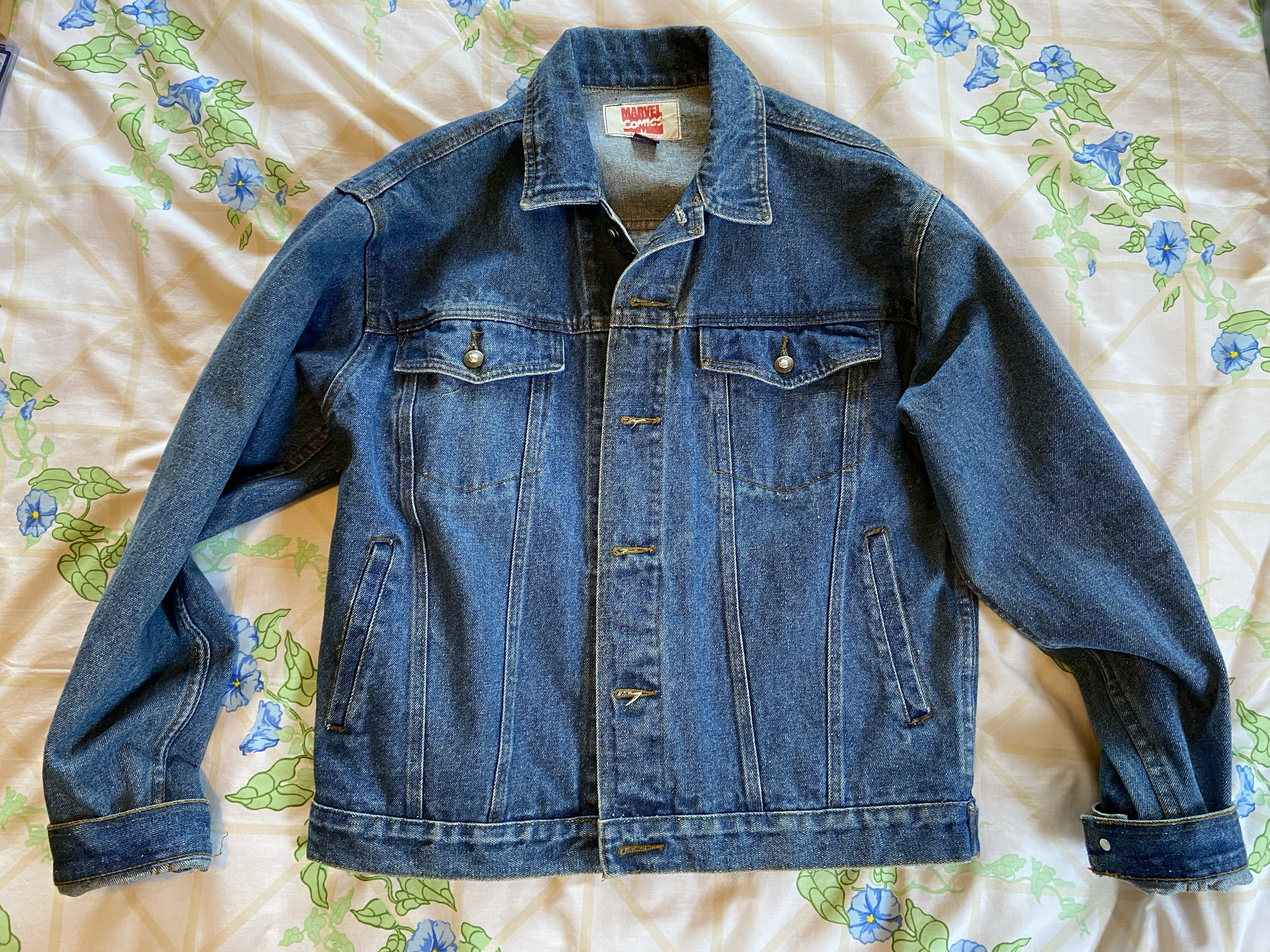 This was a huge surprise for me. I went to my LCS as usual, and when i called in to get my list and purchase, one of the owners asked my shirt size. I told him and wondered if there was another store shirt or something he could have for me, as that had happened before. When he cam down to give me my comics I saw a jean jacket with him. He told me the other owner had been cleaning stuff out and found it and they thought it could fit me and that I’d like it. It’s from the 90’s so the sizes were different, it’s a large and I’m a modern medium, so it basically fit. So, now I have quite a cool official Marvel brand jean jacket. I love my store. <3<3