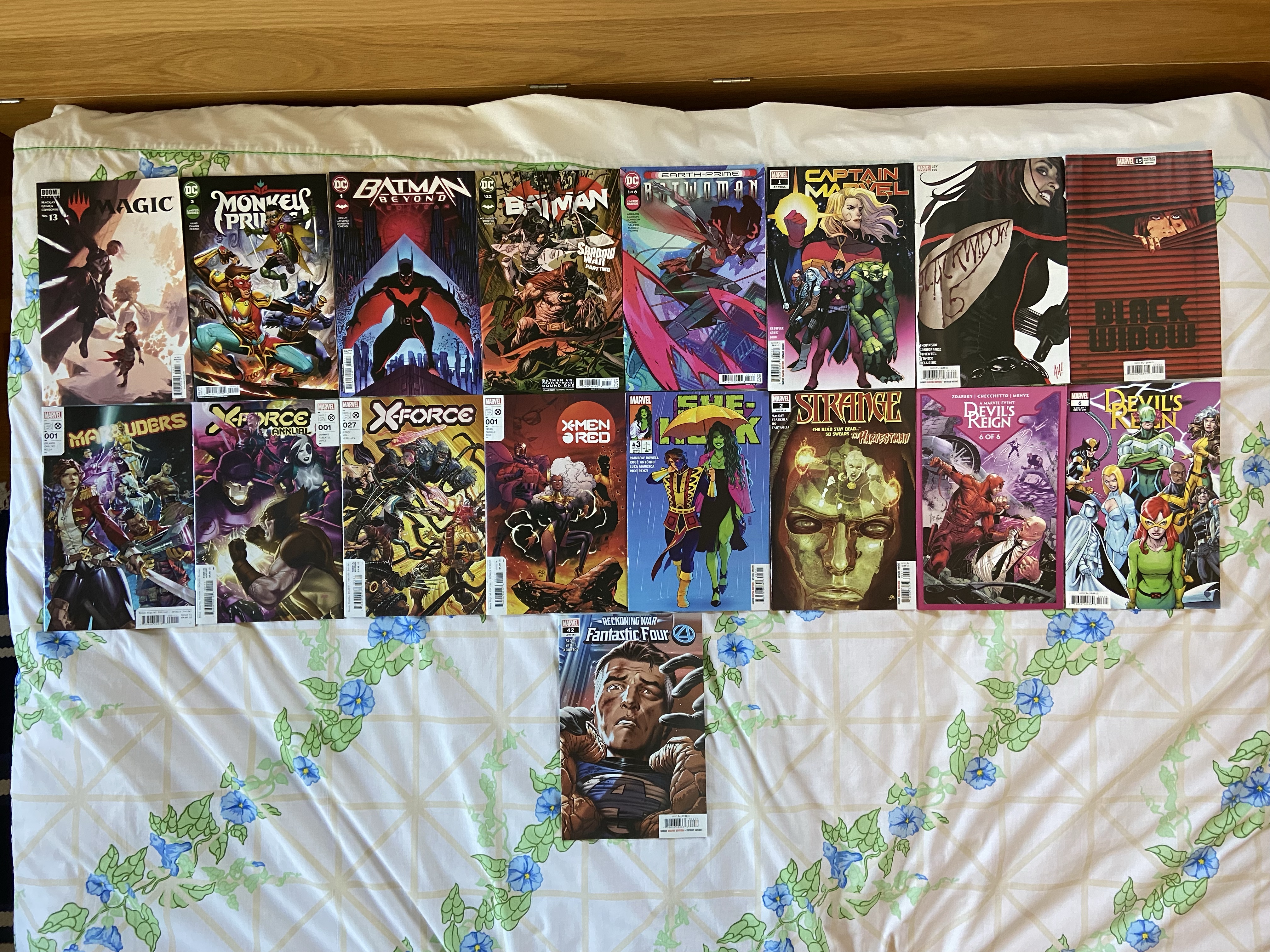 But, that means that this is the first week that I haven’t read the issues, and therefore, I can’t type up what I usually do about them. It will be like that from now on unless for some reason I am unable to post but still read issues. But I can comment on some of these. Batman Beyond got a new run and I got issue one to try it out and see if I’d be interested in the plot. This was also the week of issue one of the Earth-Prime miniseries that is connected to the Berlantiverse/Arrowverse on the CW. I liked that variant for Black Widow just because the shades design works well for a comic cover. Also, Marauders and X-Men Red started new runs. I think this is all post-Inferno. And there’s the Devil’s Reign finale which I’m excited to read.