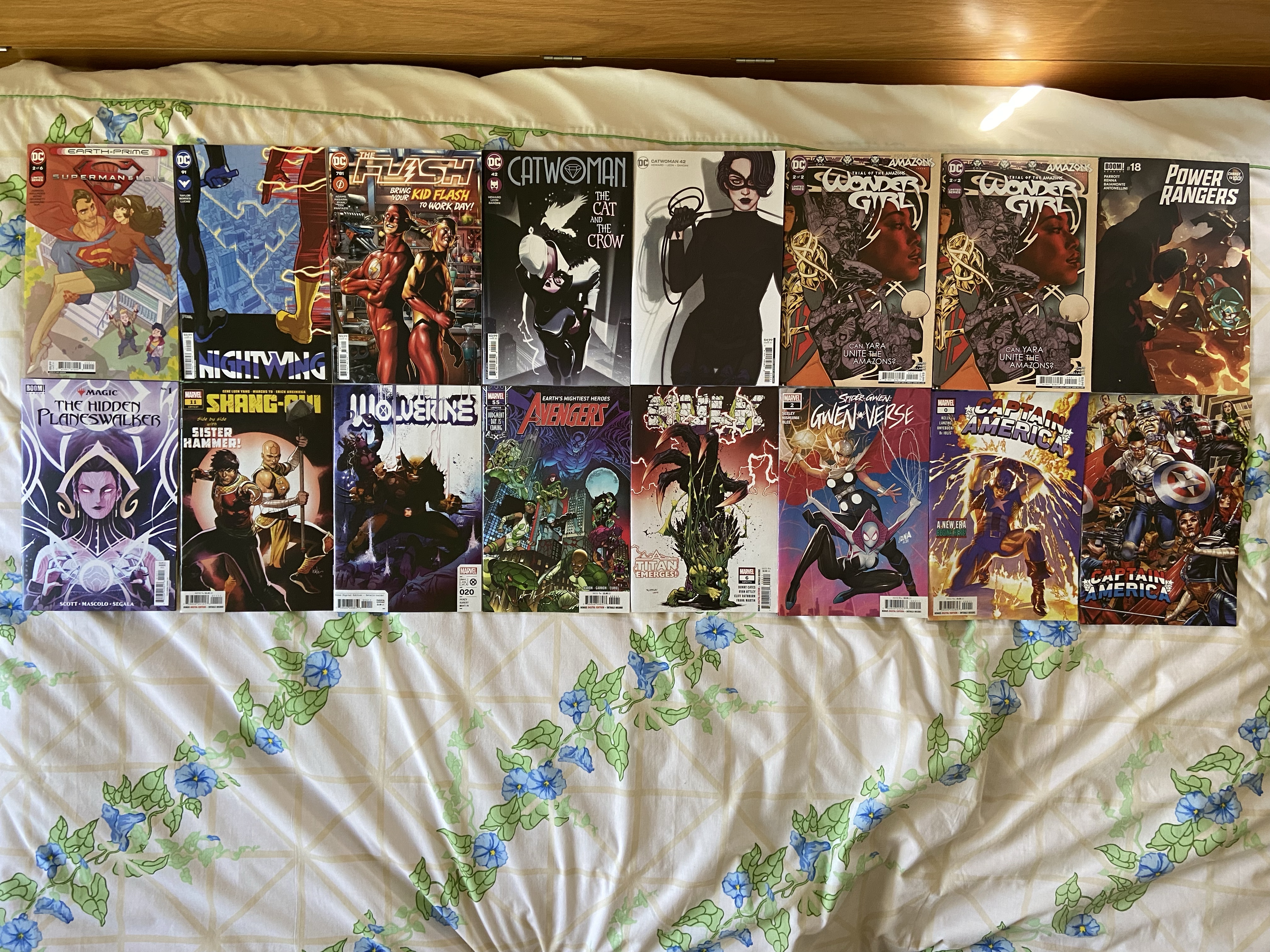 Woot! This is the first time after being caught up that I can post photos I just took! XD We got the second Earth-Prime issue featuring Superman & Lois characters. The Wonder Girl issue is the penultimate issue of the Trial of the Amazons event. MTG gave Liliana her own title. Hulk I think will introduce us to a new character or Hulk persona. The next issue of the Gwenverse title dropped. And finally, the new era of Captain America has begun (with another title dropping next week, May 4th I think focusing on Sam being Capt again)!!