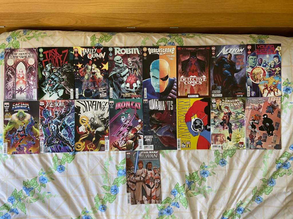 I can talk about some of these since I’ve read some of them. So, the tenses will be back and forth. The MTG issue was a bit of a finale, a lot happened and I’m continually excited for more. Task Force Z had a fun reveal. This was the end of this Harley arc. Robin had a bit of a reveal itself while it’s closing in on its final issues. Deathstroke Year One continued. That Detective Comics issue is one I’m waiting on another copy for since I love the over, oh and the story is interesting too, haha. Action Comics keeps building on the rebellion against Mongul. I’m excited to get to this Young Justice tie-in to the animated series (streaming on HBOMax). I can’t remember if this is supposed to be after season 3 or during it or what. Captain America I still have to read a volume and a special before I can start either of these Captain America runs. Hopefully I get to them soon so I can actually read these. Venom is literally the next issues I’m going to read later today, but this whole arc has been crazy, I love it! Strange I’ve not gotten to yet, but again, I’ve enjoyed this arc with Clea. Iron Cat was a bit of present day with a touch of backstory. This Variants issue I’ve not gotten to yet. I’m excited to start this new Ant-Man run! Amazing Spider-Man has officially reached 900 issues!!! It’ll probably be around 4 years till we get to ASM #1000, and that will be wonderful. That’s the last issue I’ll read as part of this week. And this Obi-Wan issue was brutal in that he was remembering a battle during The Clone Wars that didn’t go well.