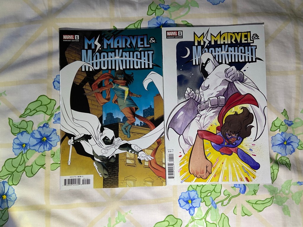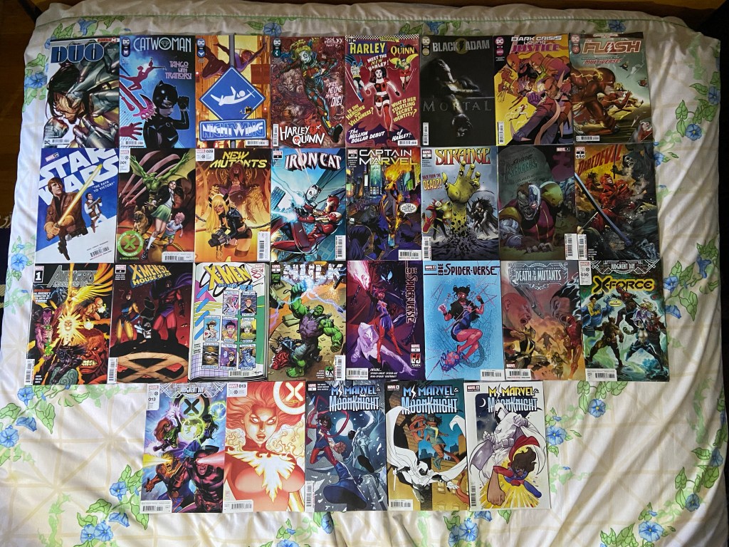 Oh that’s right, that X-Men Green issue was supposed to have come out months ago, so I read it before this week’s issues and last week’s issues. It was unexpected but I loved it! I’ve been enjoying Catwoman’s current arc. Also Nightwing’s. This Black Adam run is interesting so far. two more Dark Crisis tie-ins. Captain Marvel without Carol there has been funky. Stephen returns! Ish. Daredevil 650 dropped this week. I can’ wait to read it, it’s funny being a big legacy number issue right after issue 1 of a new run. Wooo! Finally! I’ve been waiting for this one-shot!! Avengers 1,000,000 BC!!!!! I really liked the introduction of these characters interacting with each other that I think first happened in Marvel Legacy. I still wonder if they’ll ever have a title all their own. There’s the final issue of this Hulk and Thor 60th Anniversary crossover event. The next issue of Edge of the Spider-verse, which seems to be ramping up to a dramatic spider-event. The last Judgement Day issue I read shocked me with what Uranos got done in an hour. I’m wondering what insanity is waiting for me in last week’s and this week’s issues. And here’s the next Ms. Marvel team-up issue with Moon Knight.
