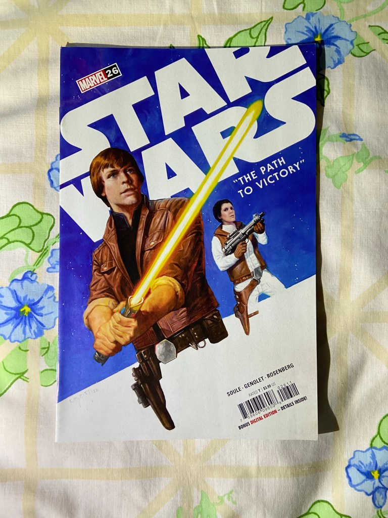 This A cover of this issue is reminiscent of the old Star Wars EU novel covers from the Fate of the Jedi books. It’s not the same style, but it reminded me enough of the covers that I wanted to get this.