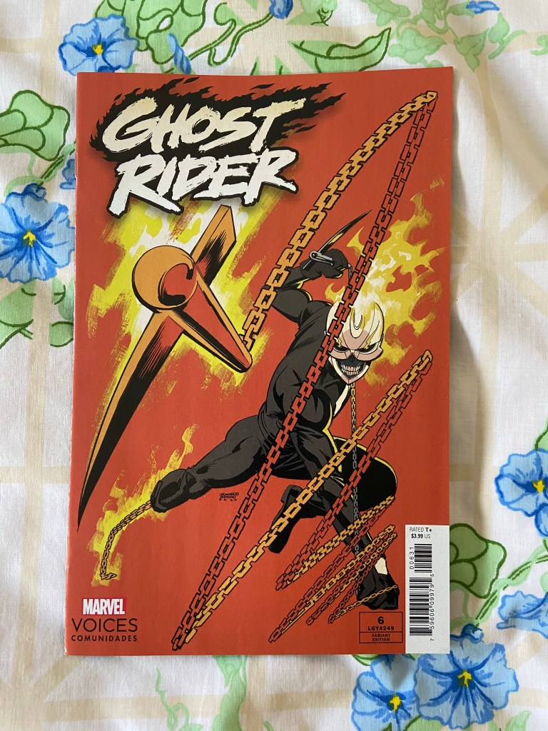 This Ghost Rider cover is the first in the Marvel’s Voices Comunidades themed cover series. There’s another one in next week’s post. They are of course celebrating some of the various wonderful Latinx Marvel heroes.