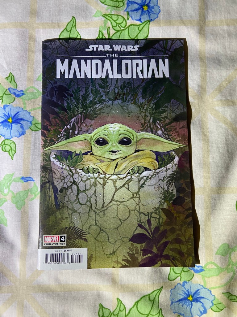 This is a Momoko cover! I check the Mando issues for covers since you never know who they’ll get for variant artists. This is very different from average Momoko covers as they use white space.