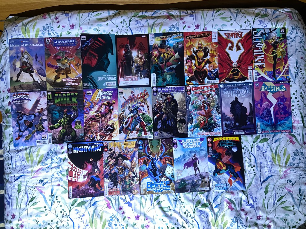 I’m very excited for Nahiri’s comic! I know a bit about her history and her relation to Sorin and Ugin. I had forgotten that Dark Horse was taking over The High Republic Adventures title, so when I saw the comic pop up when I set my list to include Dark Horse comics for a different comic I was getting, I was like oh yeah! Vader will meet the Techno Union leader again. Interested in seeing what happens with Clea and Stephen. This Planet Hulk stand-alone story is intriguing being set 1000 years in the future. Finally the Avengers Assemble event is beginning! We got Wildstorm’s 30th Anniversary special. And of course the next DC Holiday issue. And then there are the annuals for Detective Comics, Batgirls, Nightwing. Nubia got a special for the anniversary of her creation. Blue Beetle has a miniseries.Coming from that one-shot a couple weeks ago we have the JSA getting a new run. And of course, the return of Kal-El special! Though its very poorly timed since the end of this special leads into JL 75 from a few months ago, DC either timed out the Dark Crisis too early or these other titles that happened before JL 75 had delays.