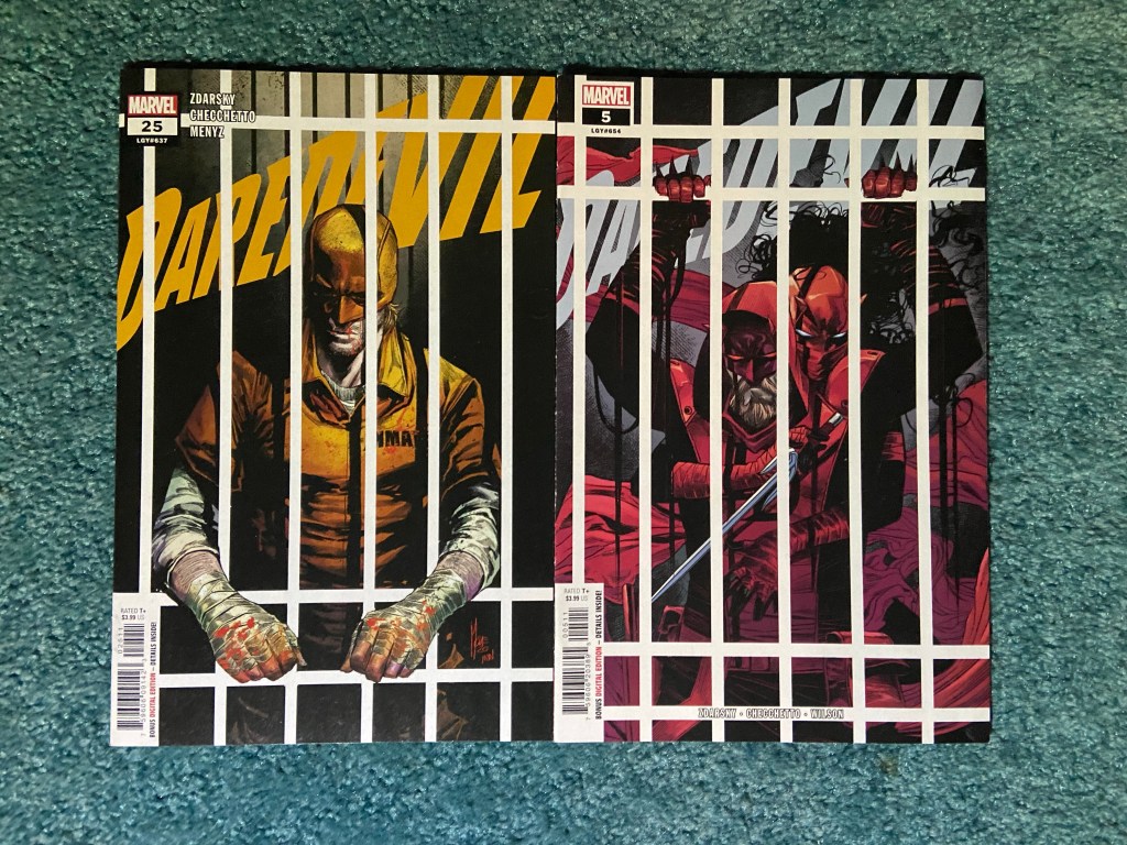 I had to buy the older Daredevil issue again since I’m not quite sure if I bought another issue of that cover or not. But this is the matching set of Marco Checchetto’s prison bar covers. The first is from December 2, 2020 and I was happy to see him do a companion cover for this recent issue of Daredevil from November 23, 2022.