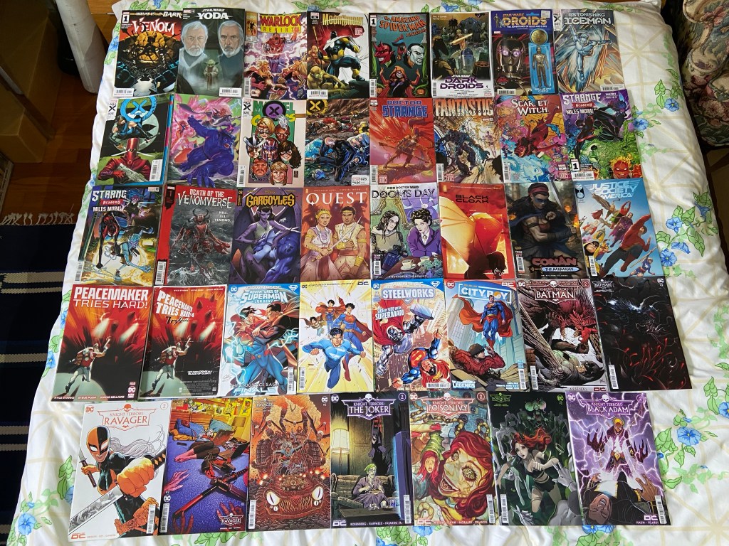 Always enjoy What If? stories. This Yoda run as been great, I can’t wait to get to this issue! I got this Moon Knight issue just in case the 25th issue ended din some kind of cliffhanger. The Dark Droids event has begun in Star Wars. I’m still not sure if I want to read through this event or wait. But I guess I’ll see when I get to this issue. Bobby has a new run! I think it’s a miniseres. This 25th issue of X-Men seems to have a lot going on in it. Stephen and Clea are having a time. I’m glad that we’re getting these Strange Academy one-shots sine I really loved both runs but wanted more. Death of the Venomverse has begun! I got the first issue of Quest because it seems to be focusing on Indian mythology and I vaguely know of some of the myths from when I was a kid, but I thought I’d get a different POV of them through this. Even though this JSA run is taking its time, I’m enjoying it. I’m enjoying the normal DC titles still. And more of Knight Terrors.