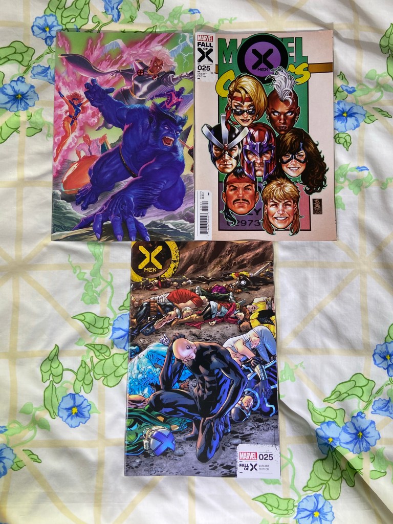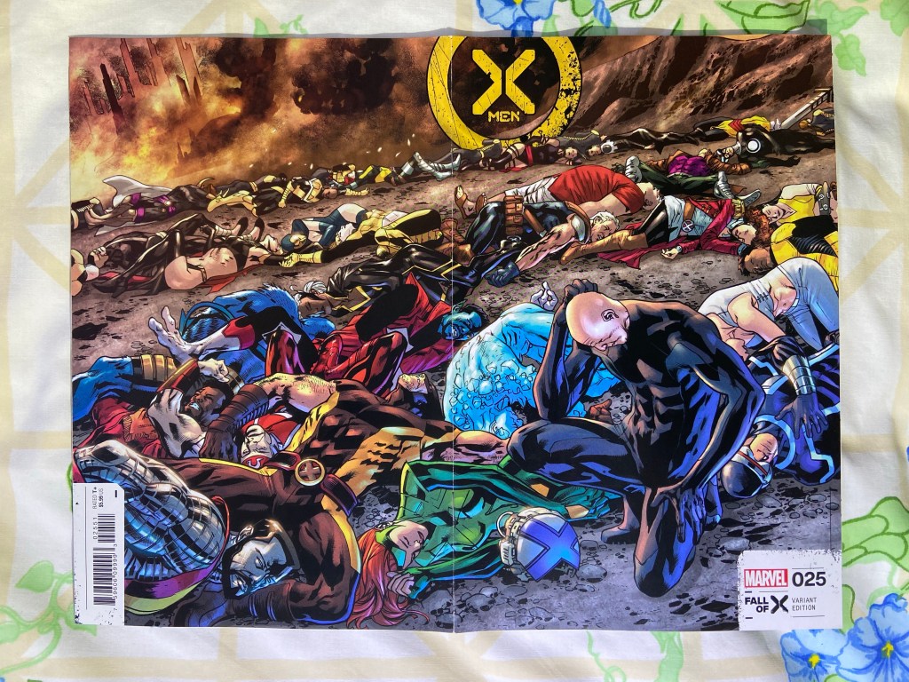 They made so many variant for this issue! This is one of the first of the Ross connecting covers of his two sets that are coming. One is of that classic X-Men gatefold cover and the other will be a classic Avengers cover homage. And of course here’s another Brooks corner box cover. And the full version of the wraparound cover is below.