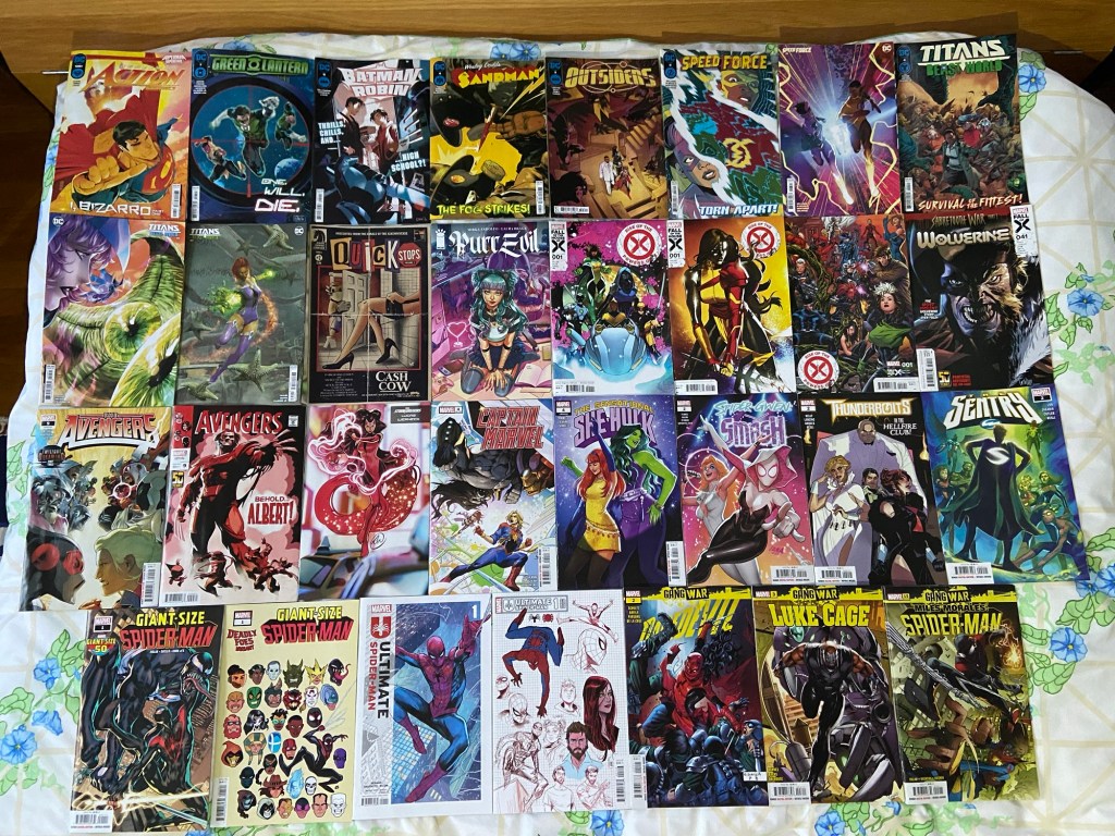 Bizarro returns to Action Comics. Drama on that GL cover. I can’t wait to get to Speed Force. Beast World continues. We got the Rise of the Powers of X issue. Sabretooth War started, it’s a 10-part single title event. I’m interested in what’s going on in Avengers. Dazzler drops by Gwen. Miles got a Giant-size issue. Ultimate (Peter) Spider-Man returns as a title! And Gang War continued.