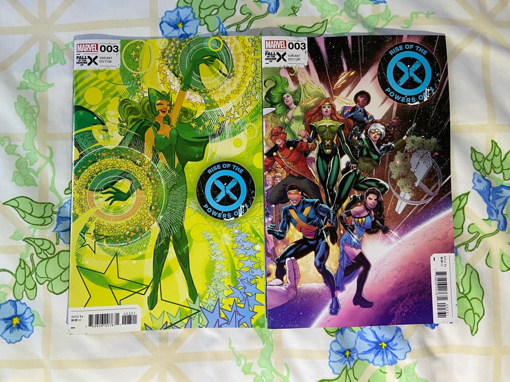 Intrigued by the Green Arrow cover! IYKYK. Medieval themed Power Girl. This was the final issue of Amazons Attack. A new HRA miniseries. Darkest Hour continues in Power Rangers. An interesting Image Comics title started, Under York. Matt and Logan seemingly battling. Rise of the Powers of X has quite the cover. Sabretooth War rages. This run of X-Force hits its final issue at 50. This is the antepenultimate issue of G.O.D.S. MJ and Felicia got a team-up title with Jackpot & Black Cat. And we got the X-Men ’97 prequel comic that takes place between the original X-Men: The Animated Series and X-Men ’97 revival. Miles Morales reached its 300th issue!