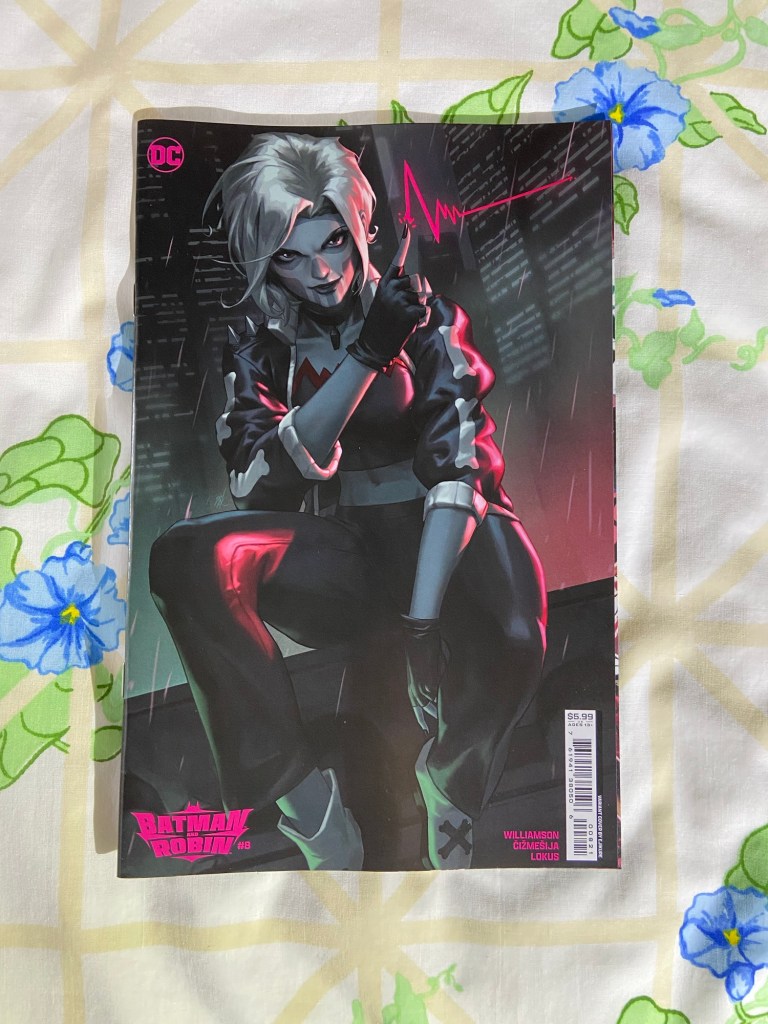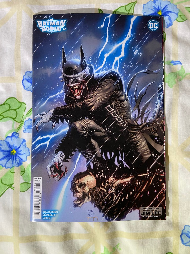 It’s always nice to see The Batman-Who-Laughs on a cover again. Especially in this cover in that classic Batman image. And of course Flatline hosting another cover.
