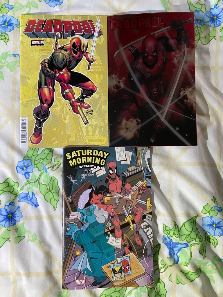 Had to have this first variant by the creator himself, Rob Liefeld, especially since he has said he would be retiring from drawing Wade soon. The foil cover is just cool. And I love these Saturday morning cartoon variants!