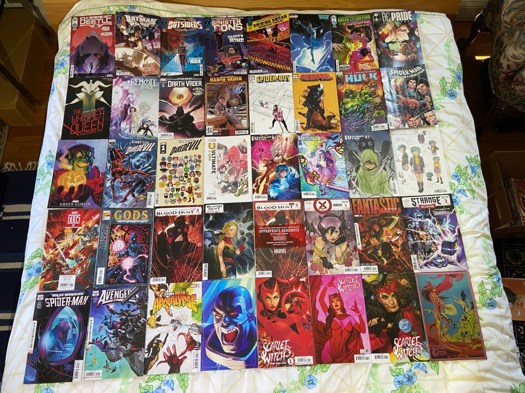 Outsiders seems interesting with both Hex’s on the cover. This is the last Dream Team issue. We got an uncovered issue for DC Pride. Got a new title called Remote Space. It seemed cool. I’m intrigued by this Vader issue. Matt got a Giant-Size issue. Ultimate X-Men, G.O.D.S., and Blood Hunt all continue. We got an Apocalypse-related miniseries started. And Wanda got a new run.