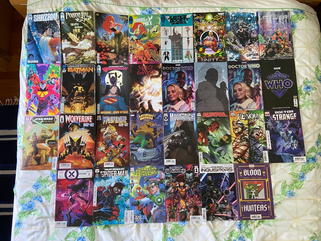 Not quite sure what’s going on in Shazam, but it doesn’t seem good for Billy. Zod, on the other hand is having a great time. Absolute Power continues. The next issue of My Adventures with Superman dropped. Doctor Who got a new run to go along with the new season that aired last month, though it’s not canon to the show, but eh, Artgerm did the main cover! That High Republic cover I think is the first that refers to Acolyte, though that issue and this phase of HR comics isn’t 100 years before Acolyte, it’s 97, but eh, haha. Wolverine got another miniseries to celebrate his anniversary. Moon Knight is back. Blood Hunt continues. Logan got a one-shot going through his life stretching back through all the decades of his comics with Life of Wolverine. And the Inquisitors from Star Wars got a miniseries.