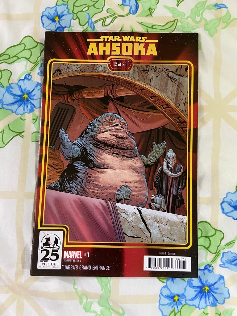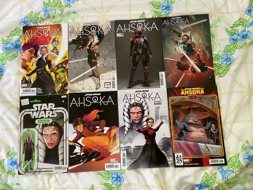 The first is the main cover by Nakayama. The next by Aka, just gorgeous. Next is a concept variant I think. The foil one looks so good! Always happy to see an action figure variant for Snips. And more Sabine is always a good thing. The next one is from the finale of the show, showing Morgan preparing for battle. And the final one is for some reason, Jabba. Well, I mean I know it’s just one of the Phantom Menace Anniversary movie covers, but I guess there isn’t really anything in that movie to relate to Ahsoka really. But hey, It’s Jabba’s first appearance.